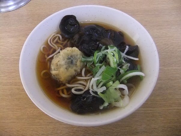 その『そば(小)+ピータン天+きくらげ』\110+\50+\50=\210。安いなぁ