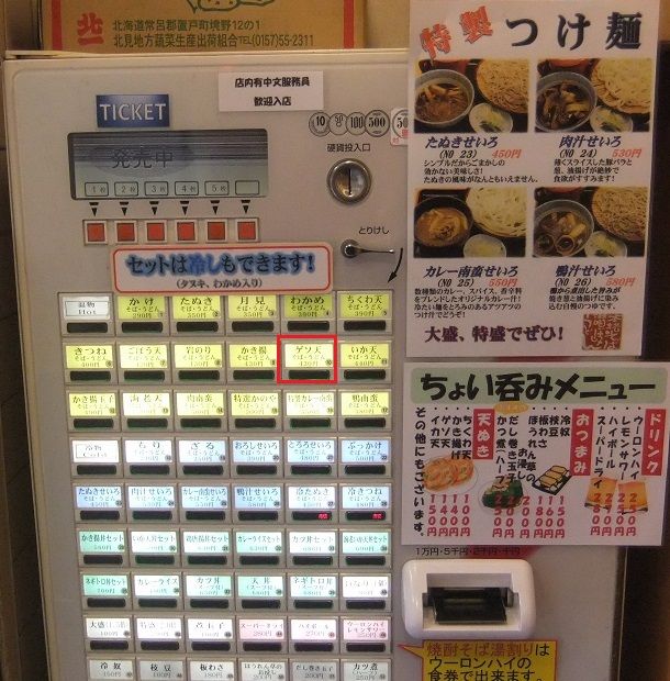 入店して券売機で食券を買って渡す。今日は『ゲソ天そば』にしよう♪