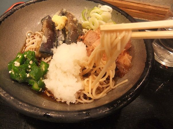 わりと混んでいたから生麺茹でたてのロットに当たった。そばも上出来。揚げ茄子美味しいし、さっぱり感はあるし、オクラのネバネバと大根おろし、生姜、鰹節もいい感じのアクセント。