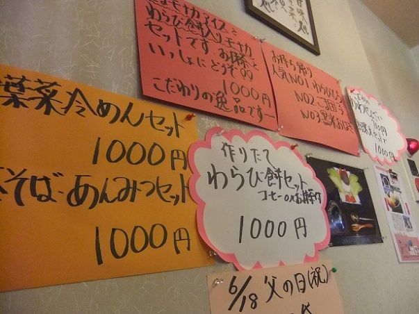 卓上のお品書き。セットものが載っていないから持ち帰り用かな。今日はしないけど。