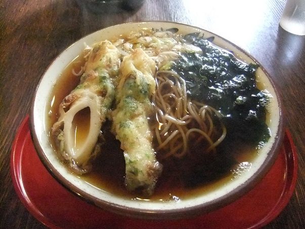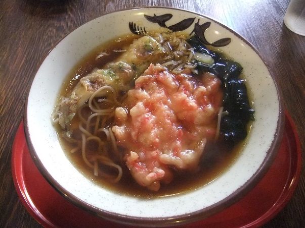 第一希望の春菊天は品切れ。じゃあ、『ちくわ天そば』\480に紅生姜天\80をトッピング。