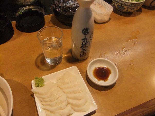 しばらくして北区のお酒『丸眞正宗』を2合\600と『蒲鉾』\300をいただく。