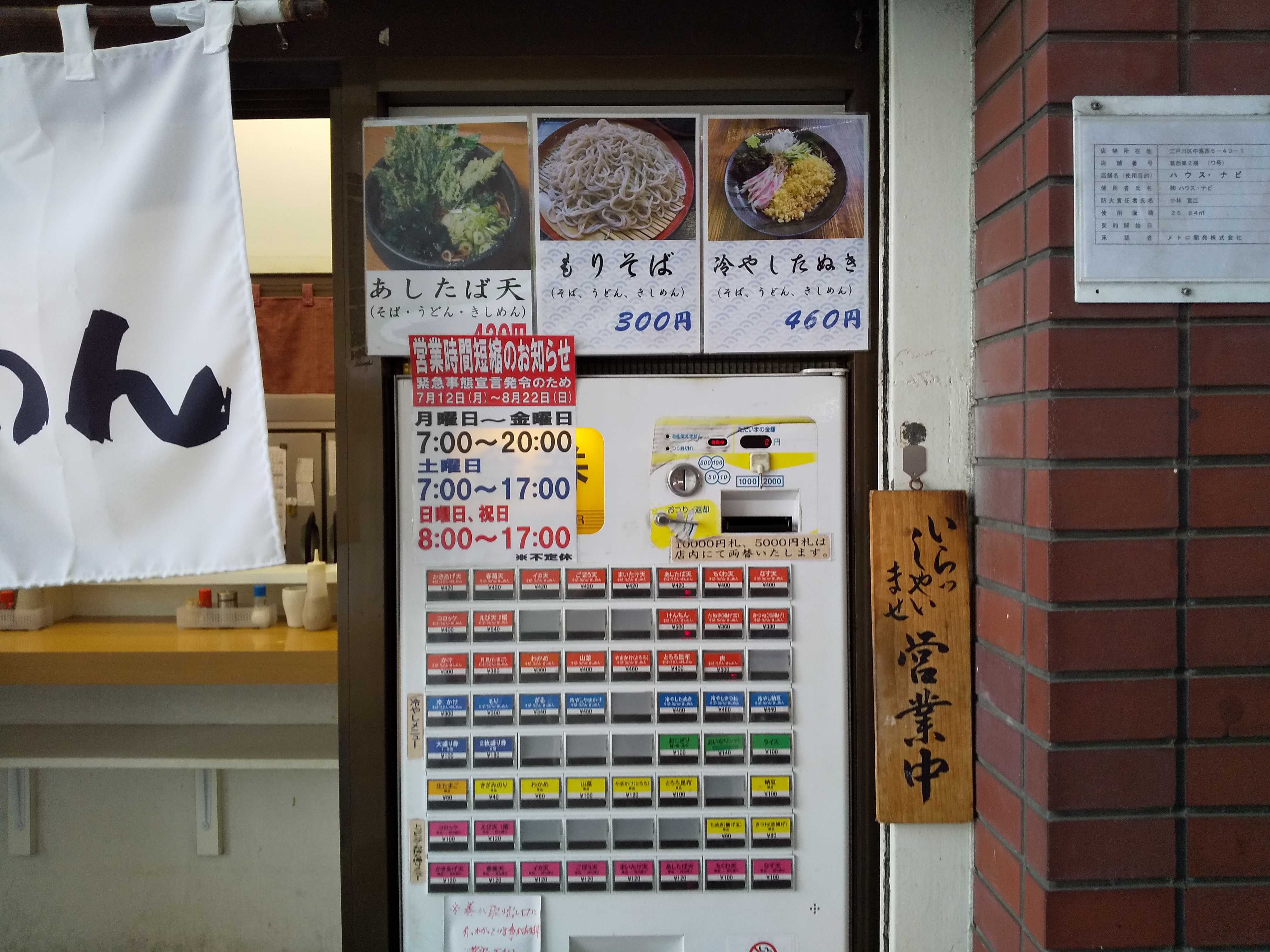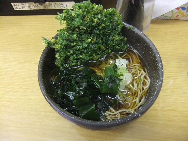 わりと珍しい「明日葉」の天ぷらそばが食べられる立ち食いそば屋。今日は違う品にするけど。