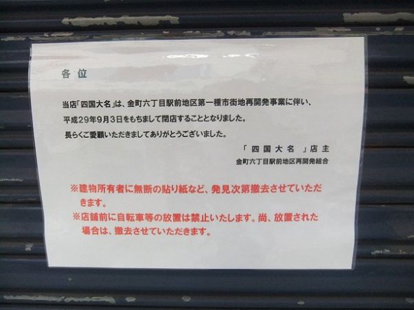 金町六丁目駅前地区市街地再開発で系列の【四国大名】は9月に閉店済み