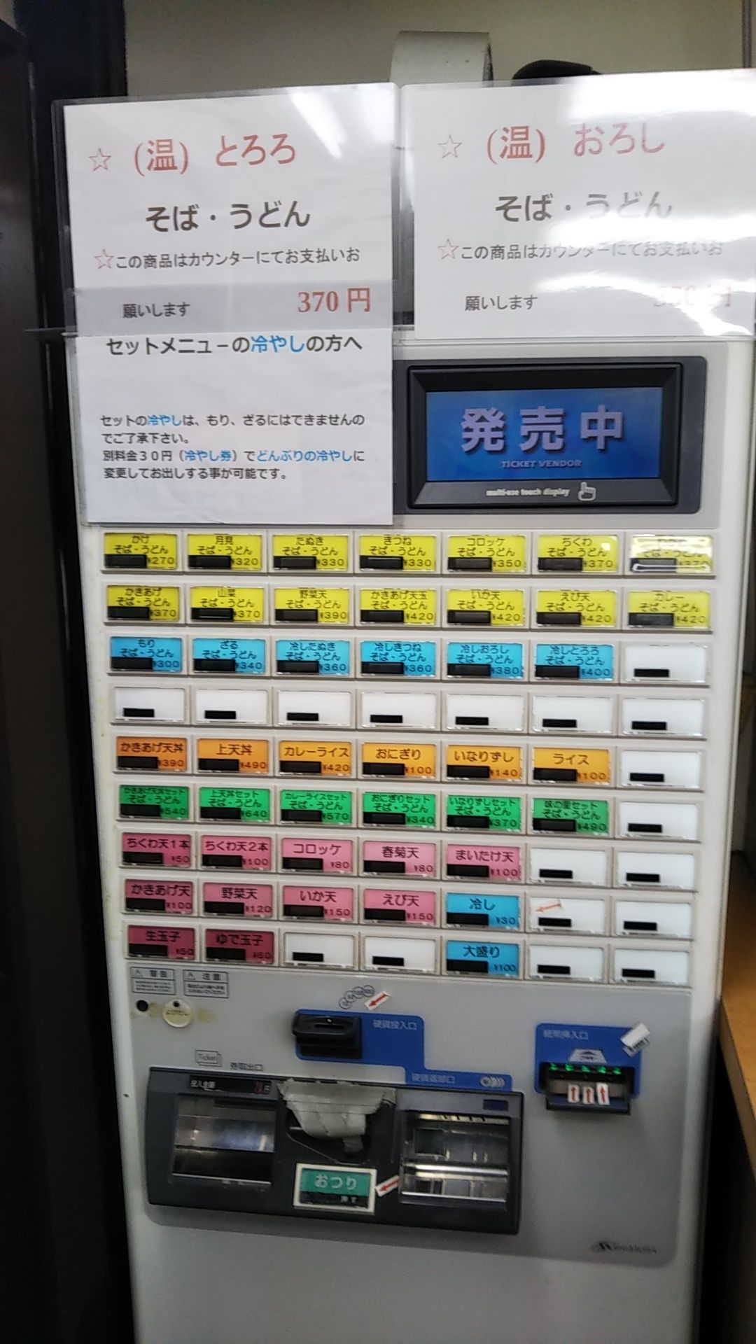 入店して食券を買うのだが、ここで冒頭の紹介文のように『かけそば』と『春菊天』のチケットを買う。
