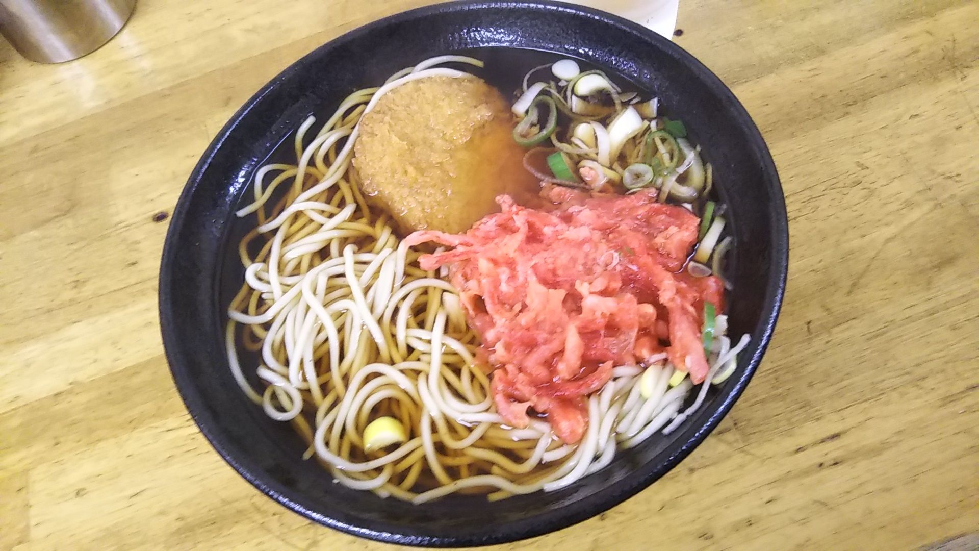 ということで紅生姜天\60追加。これで刺激的な味わいに変わって、立ち食いそばを食べた満足感が満ちてくるw