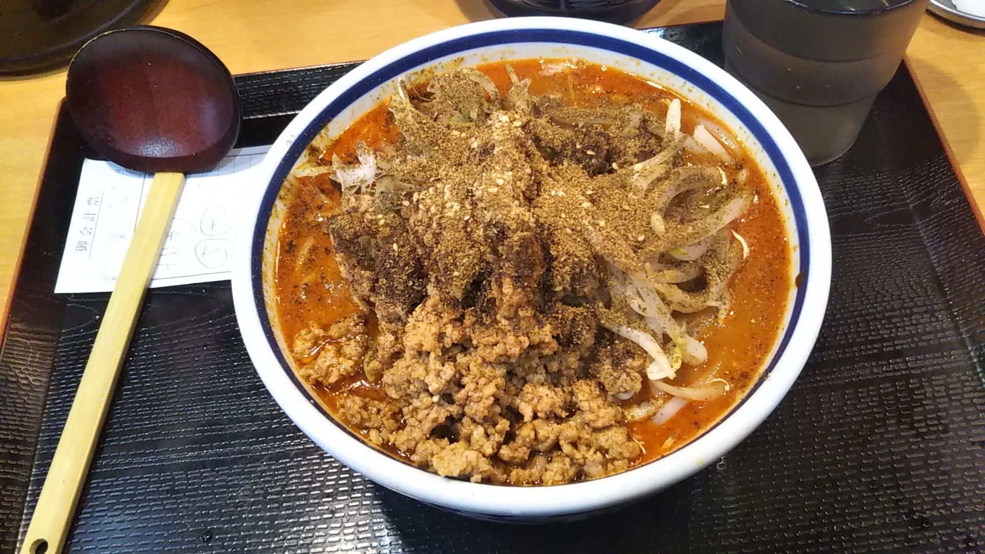 麺は大盛り無料だから大盛りで。ブログ・ネタのために有料だけど 5辛で。