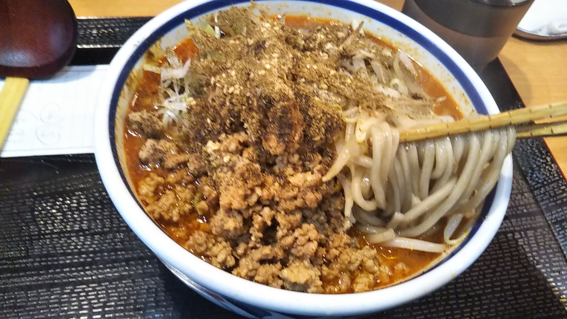 五反田駅から御殿山方面に向かうソニー通り沿いに昨年10月にオープン。麺は日本そばでラー油系つけだれで提供するのだが、『担々麺』風のそばも提供していることを最近になって知った。