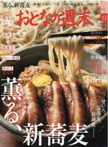『おとなの週末 No.185 2017年12月号P48-P51「カレー南蛮蕎麦の店」』掲載店の1軒で、当店の『カレー南蛮(豚肉) 小ライス付き』\850が紹介されている。