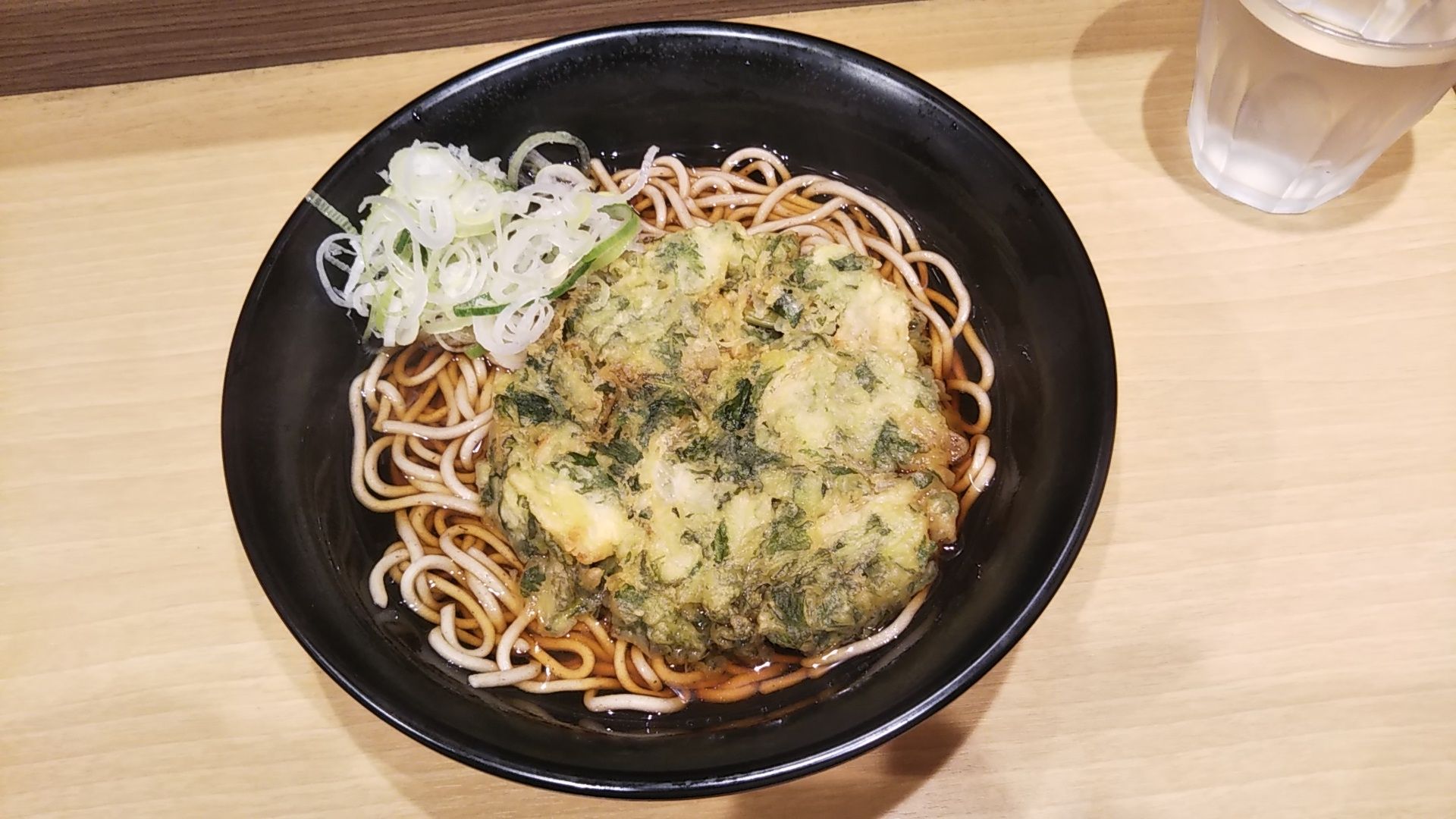 おぉ、NREらしさを全面に出す ふわぼこ茹で麺&衣がお好み焼きみたいな揚げ置き天ぷら。両方とも、昭和の時代の自分なら「駅そばだもの。まずいよな。」と一刀両断していたもの。