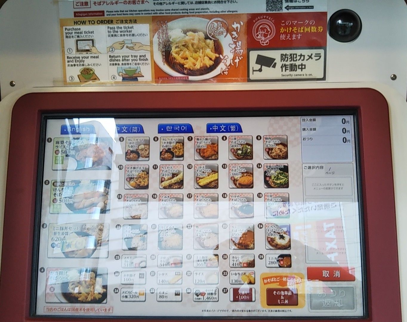 店頭の券売機で食券を買うのだが、中国語対応メニューで買うという宿題を忘れていたよ