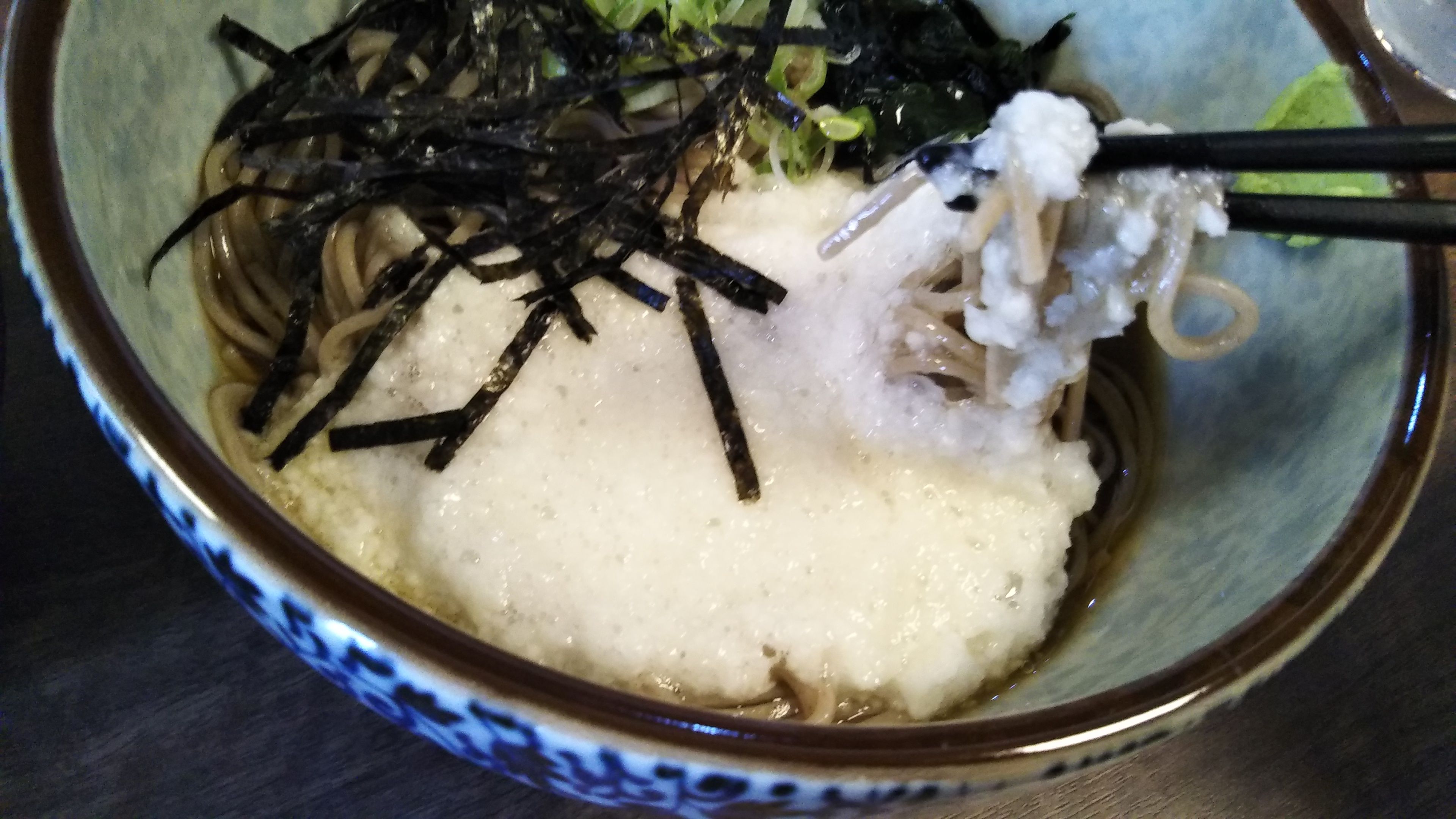 いただいたのは『サービスランチ(とろろそば+ミニそぼろ丼セット)』\850。