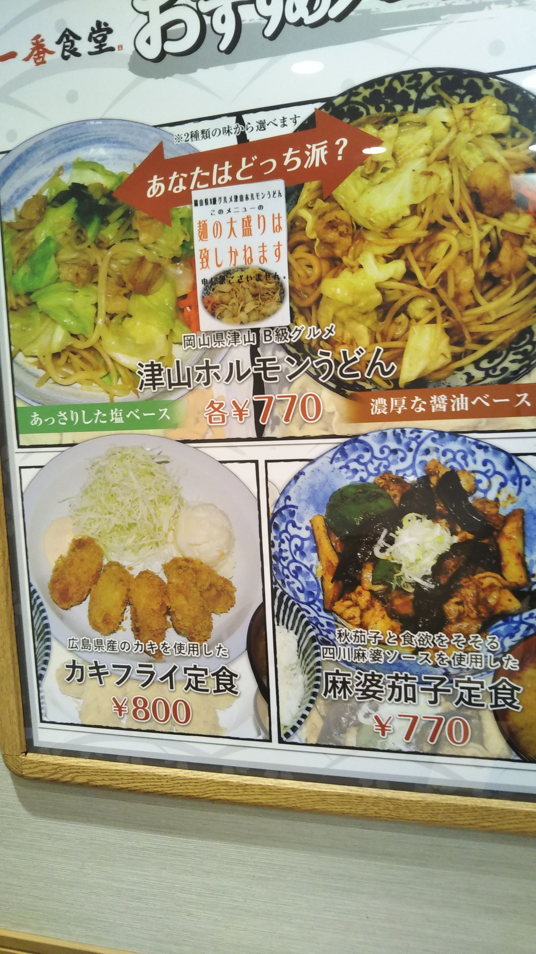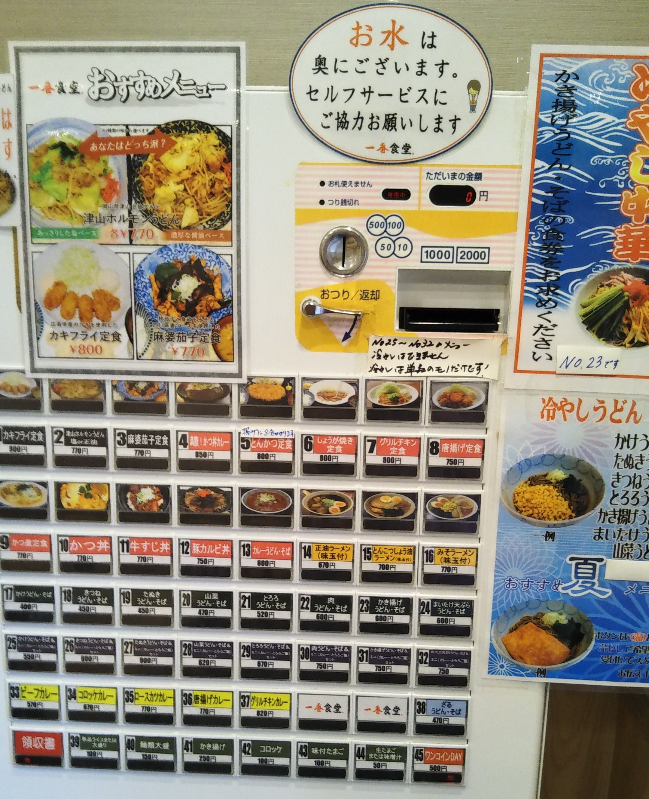 券売機で食券を買う。”おすすめメニュー”に『津山ホルモンうどん』が載っているね