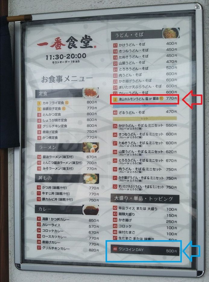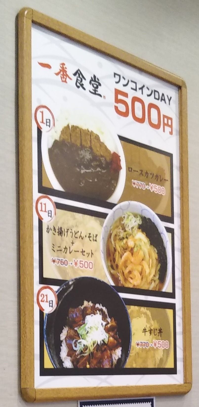 後で店内で気がつくがワンコインDAYの500円メニューもお得だよ