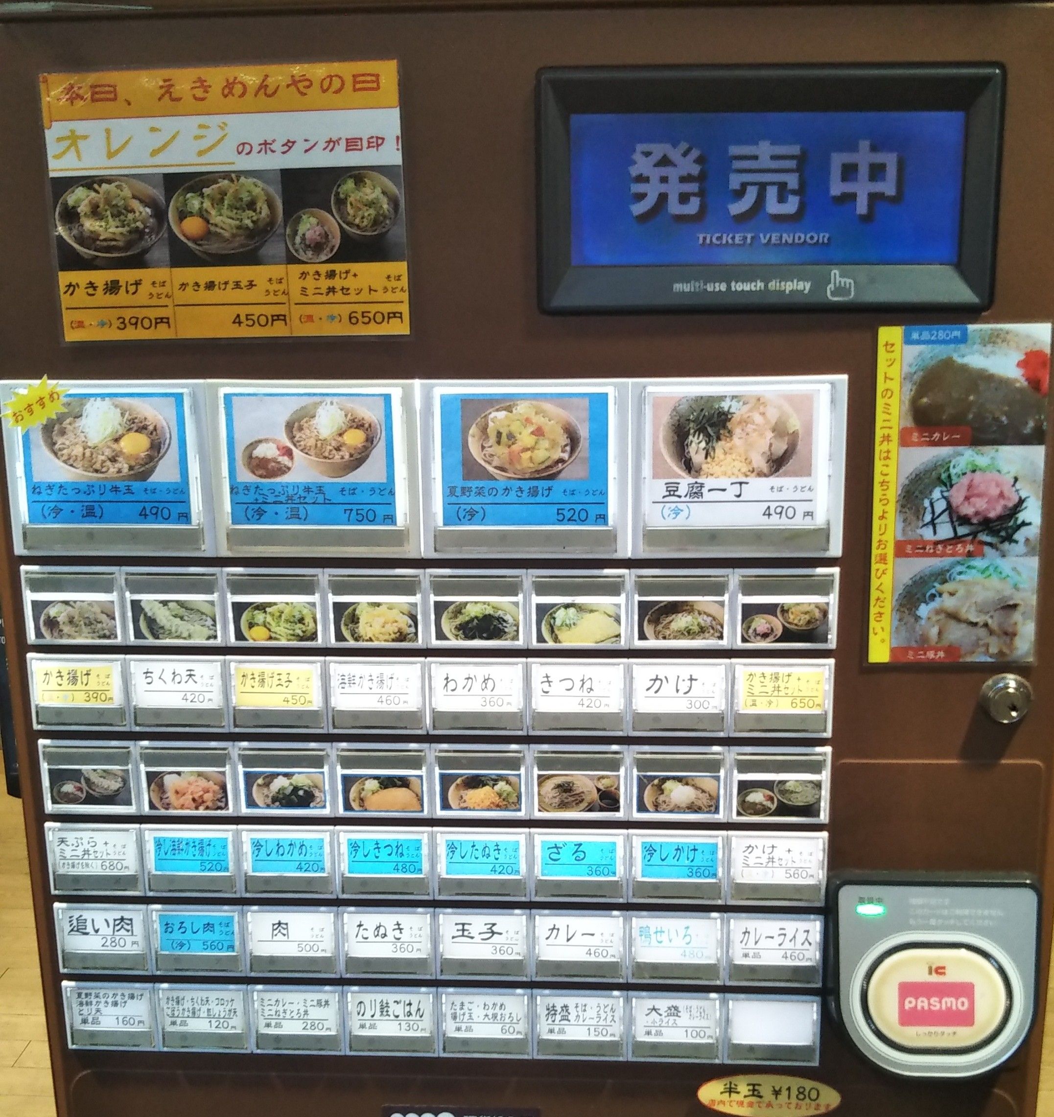 券売機。左上に「えきめんやの日」ってあるけど 初めて知った 覚えていなかった