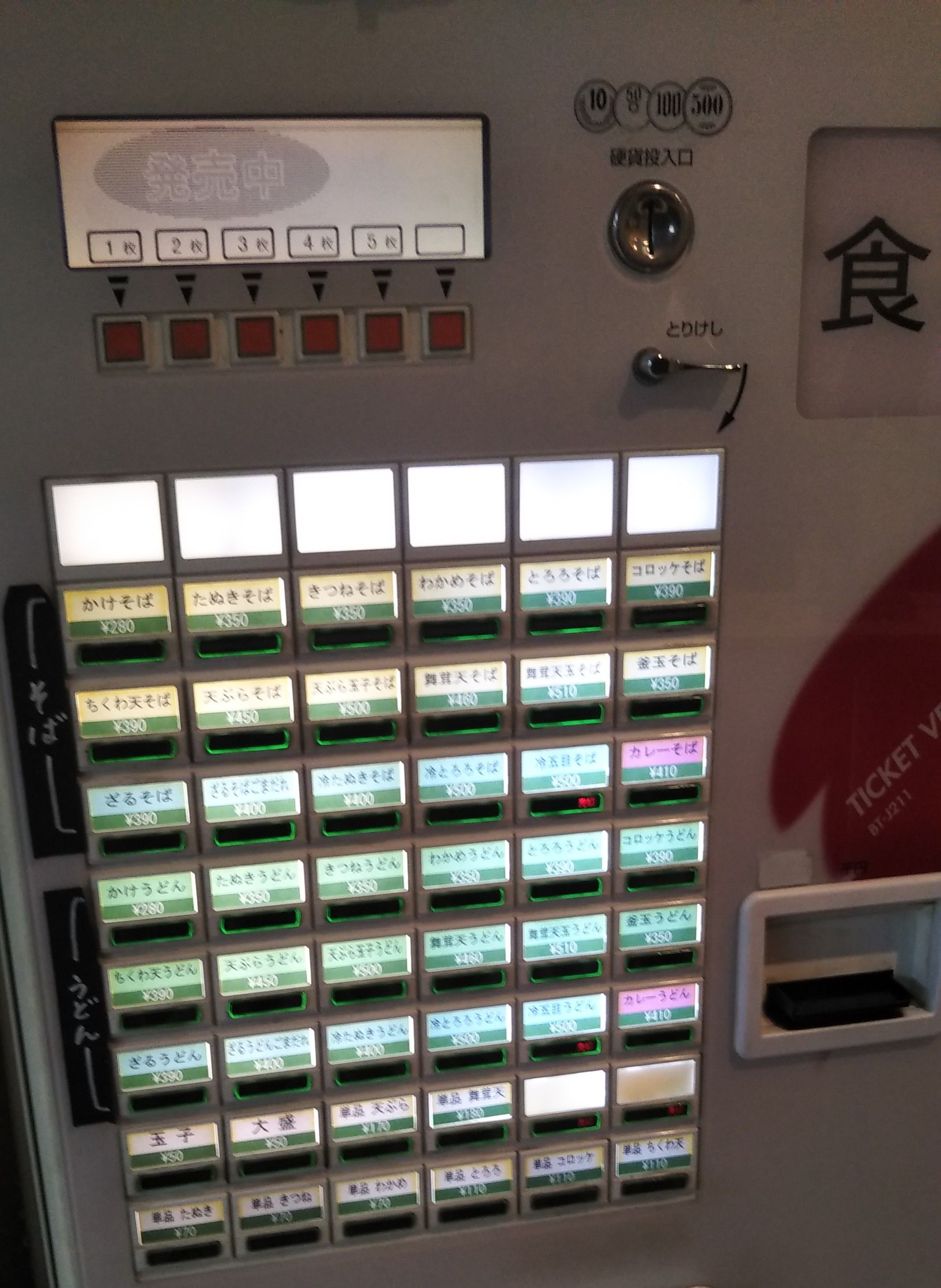 券売機。いまさらだけど、名物の『舞茸天そば』を特にアピールしているわけでもないんだねびっくり
