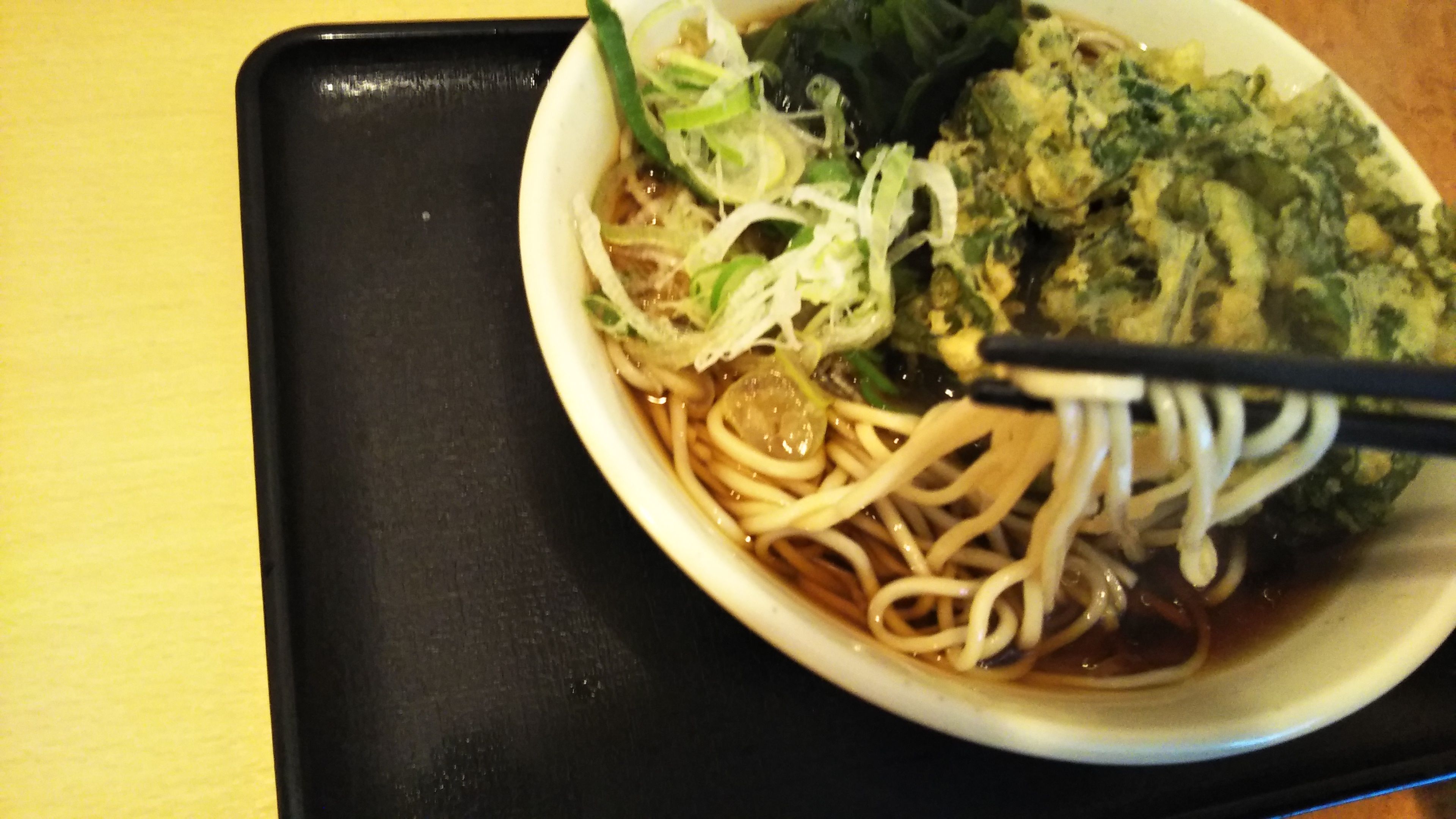いただいたのは『春菊天そば』\440。空いていたけど立ち食いカウンターにて。