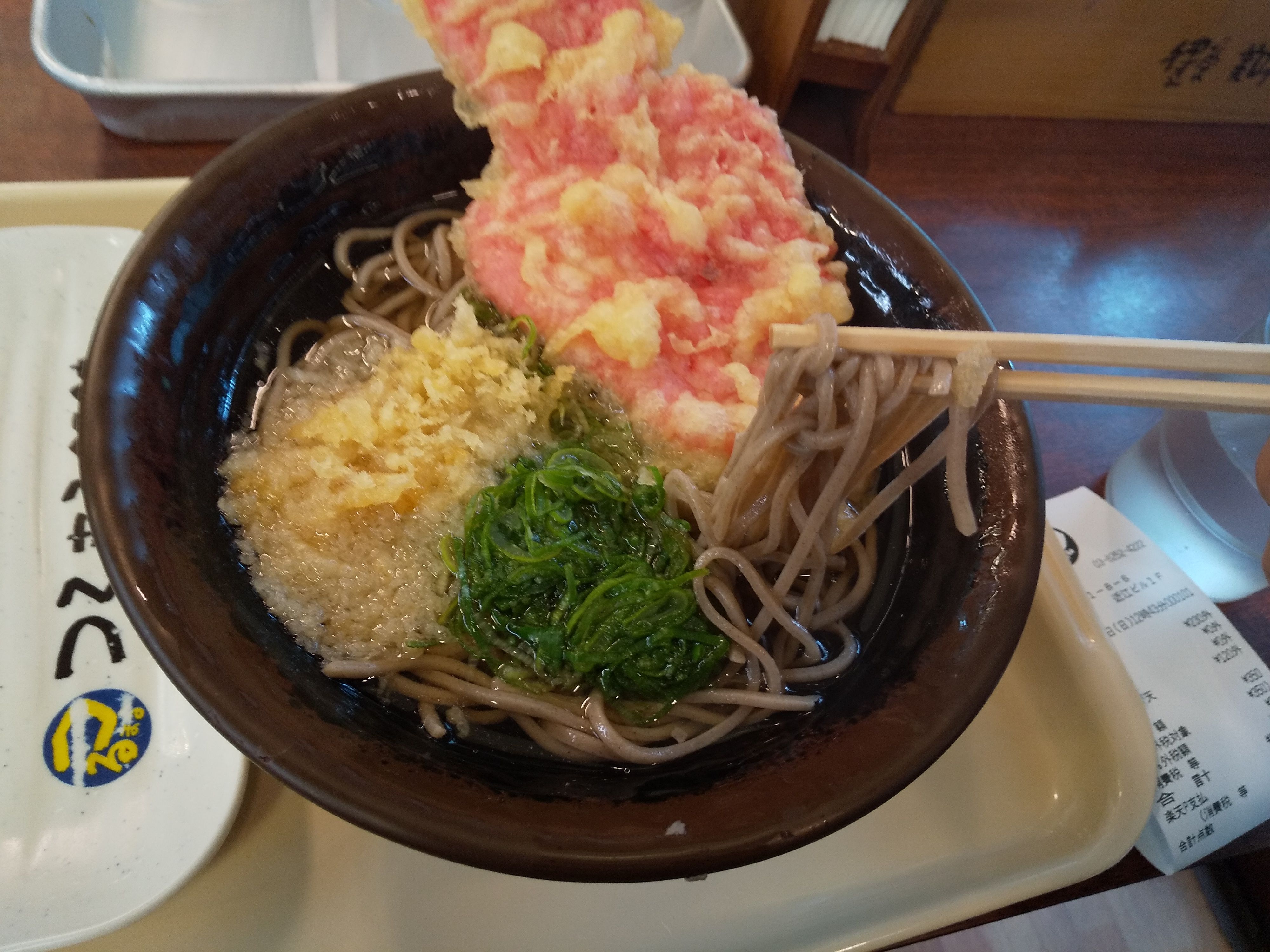 いただいたのは『かけそば+しょうが天』\230+\120+税=\385。