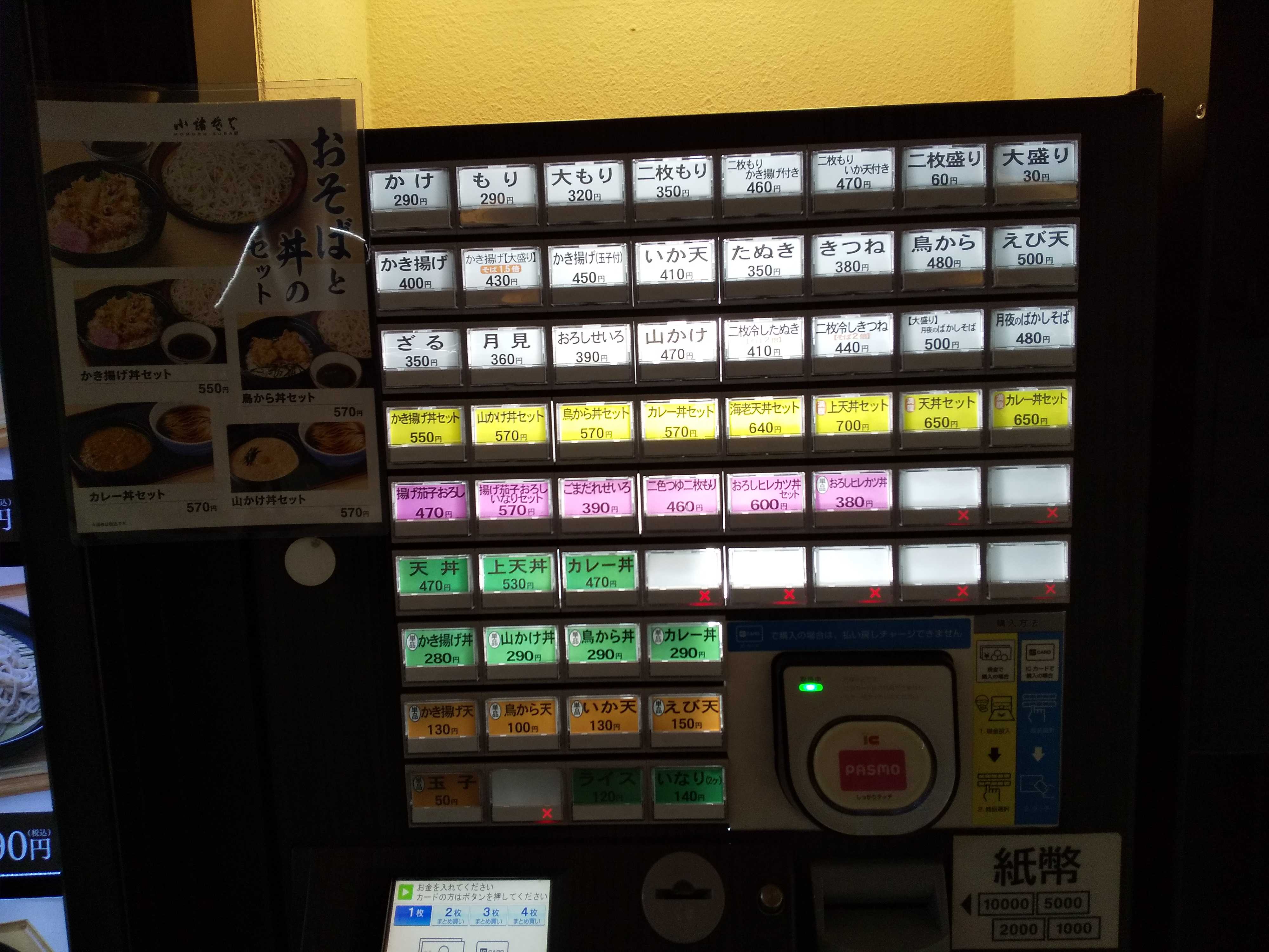 店頭にPASMO/Suica対応の券売機。完全立ち食い。セルフ。