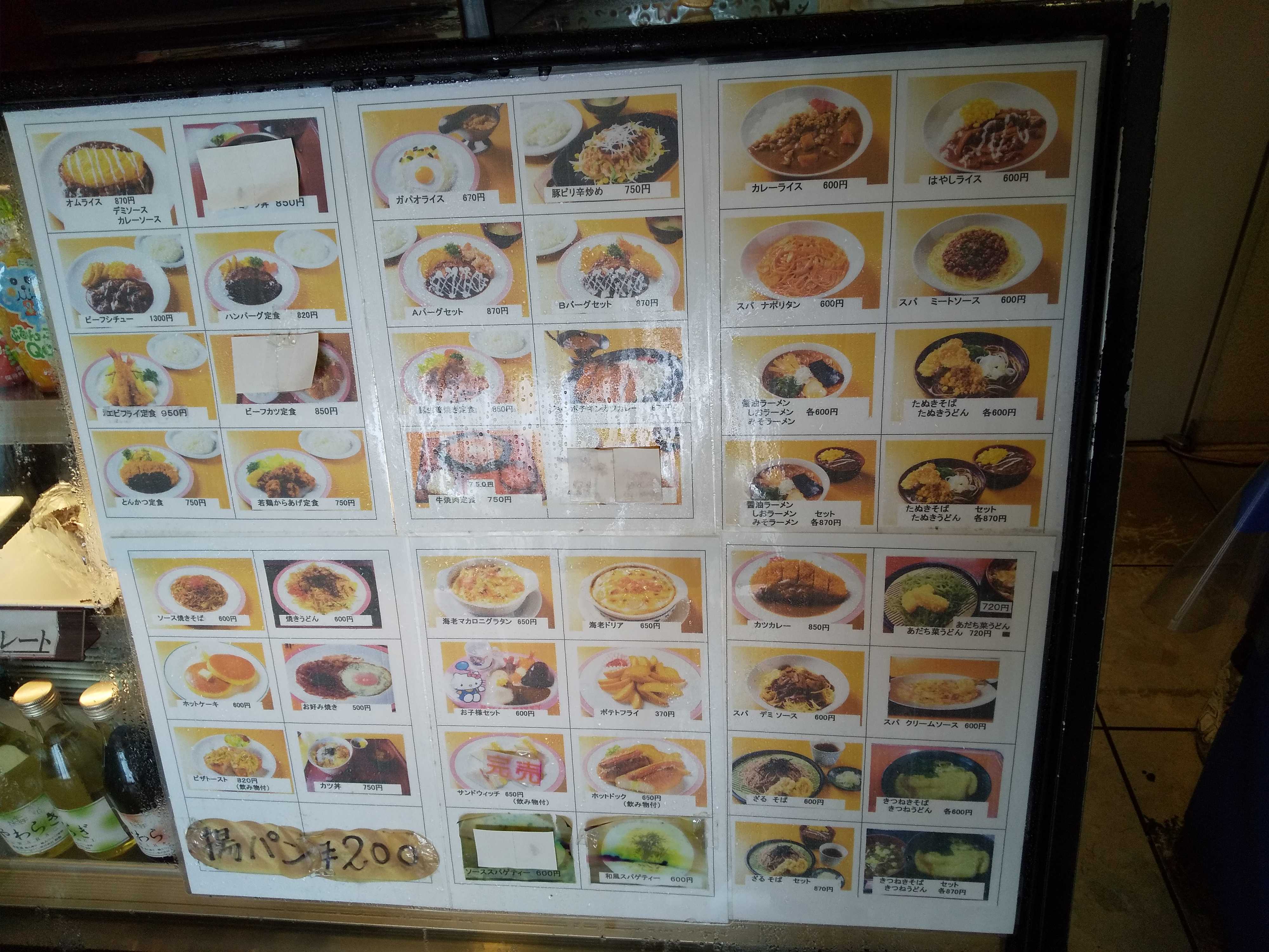 レジ 兼 注文場所のところにある全体メニュー。