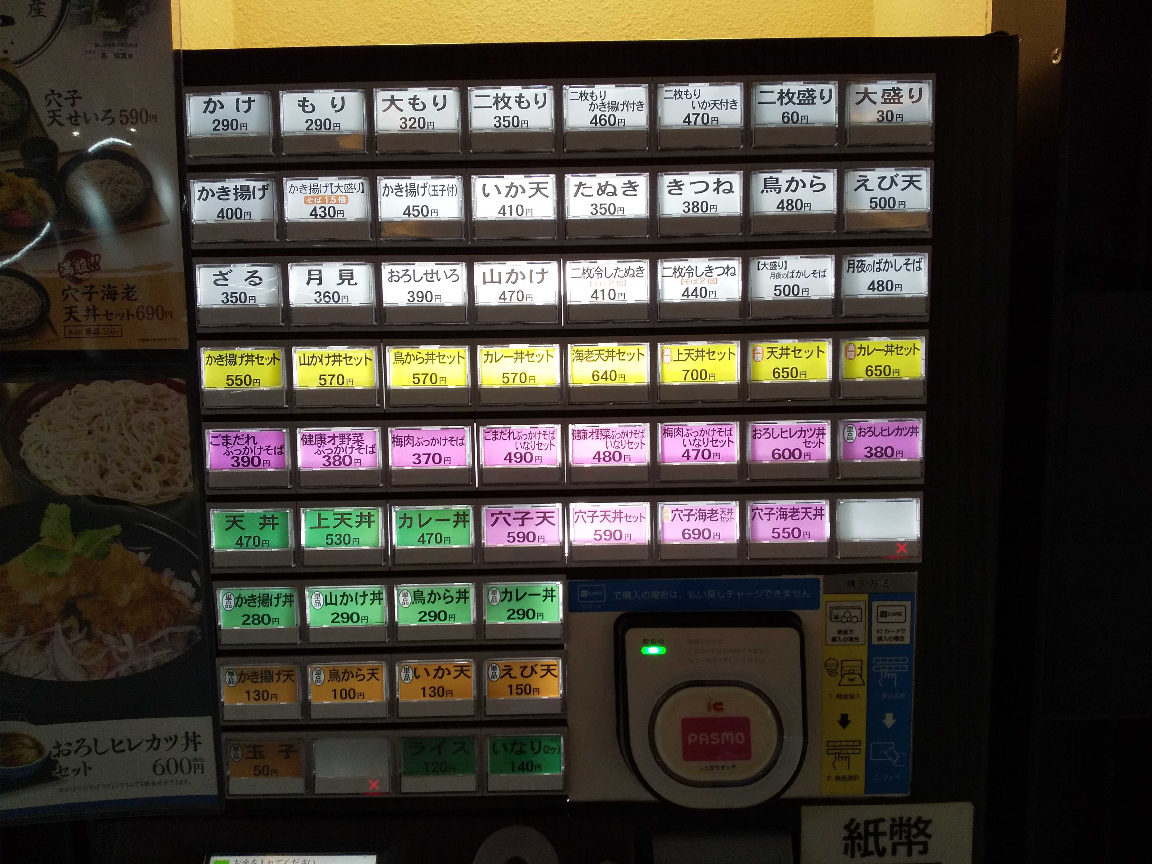 店頭にPASMO/Suica対応の券売機。完全立ち食い。セルフ。