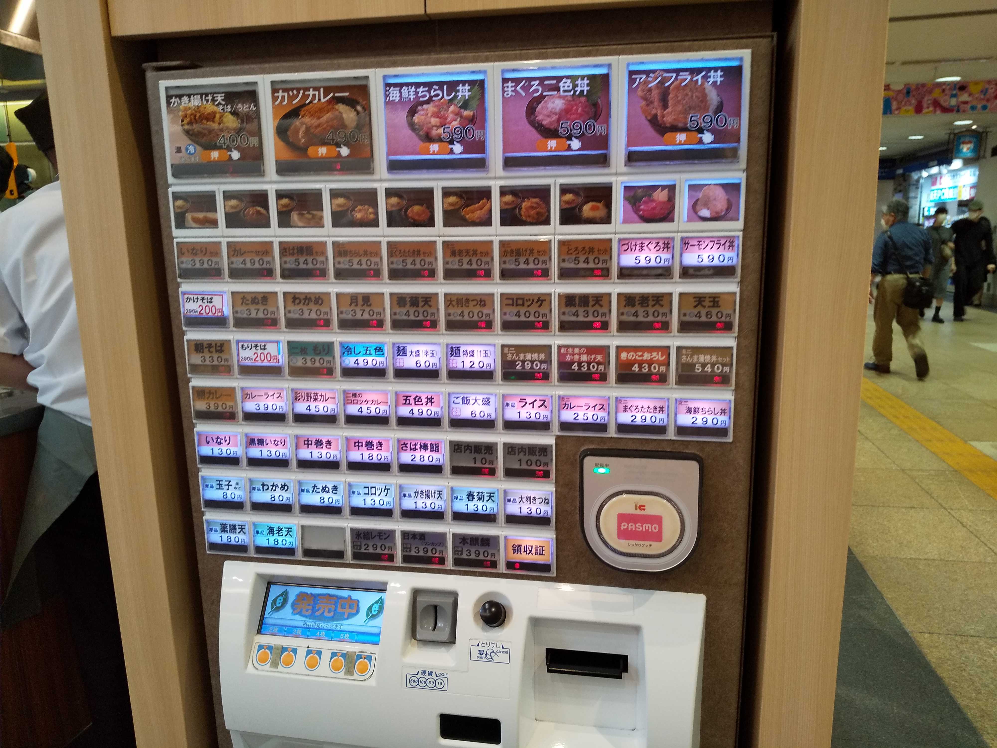 券売機では『・・・そば/うどん』のボタンはにして、『かけ』『もり』の食券+トッピングを求めるようになっていた。