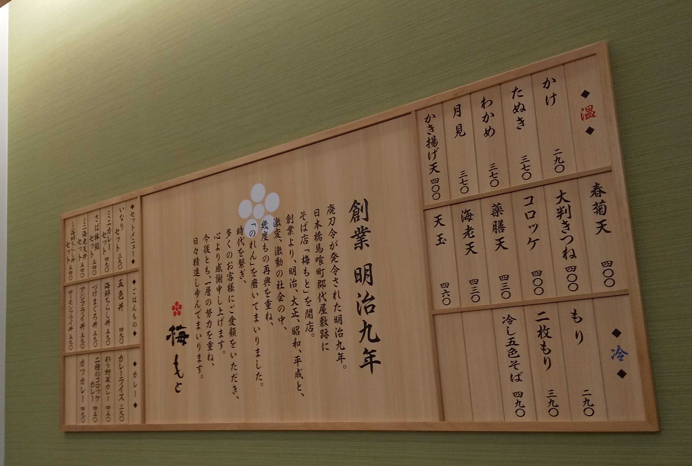 明治9年(1876年)に個人商店として創業。最初は弁当の仕出しなどから始め、首都圏に広がる直営の「そば処」はかつては10数店舗あって事業の主力になっていた。