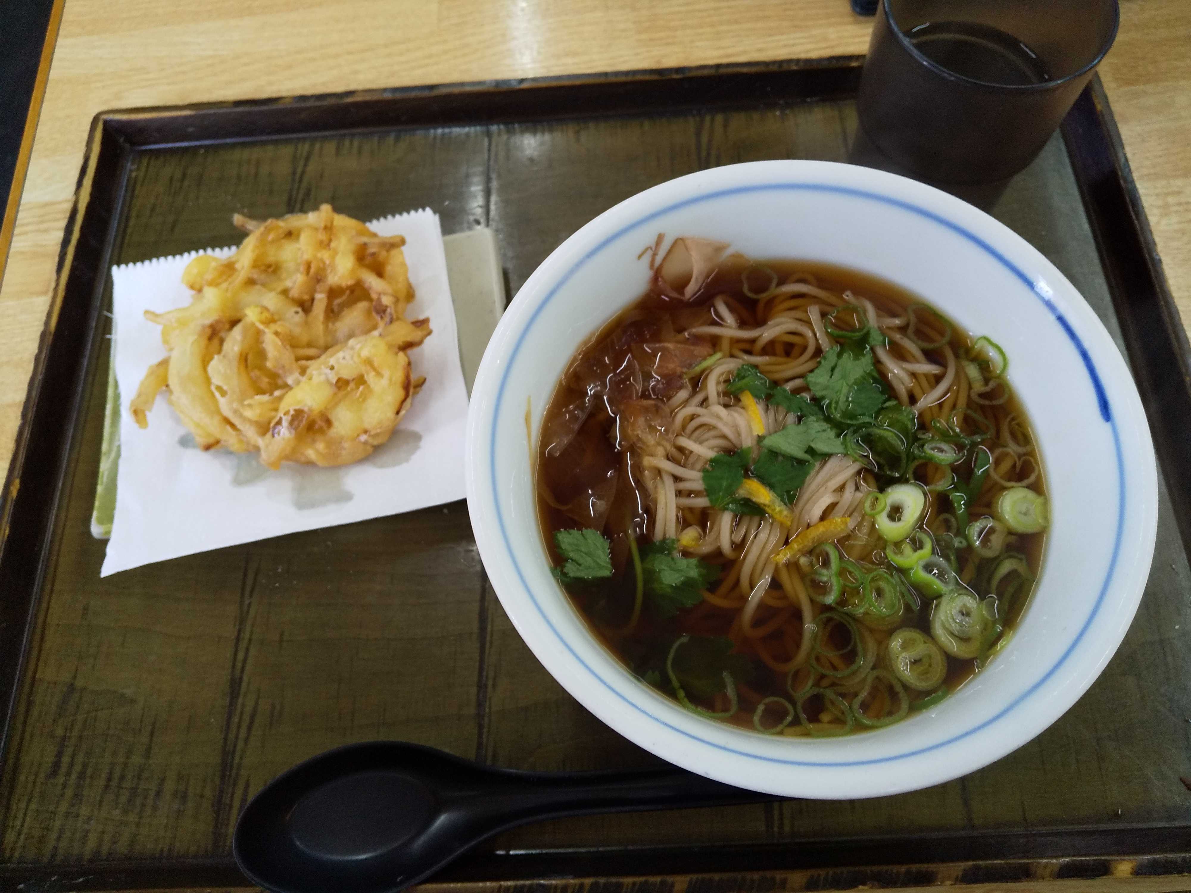 揚げたての玉ねぎのかき揚げは別皿。うどん推しだが、そばもまずまずの美味しさ。