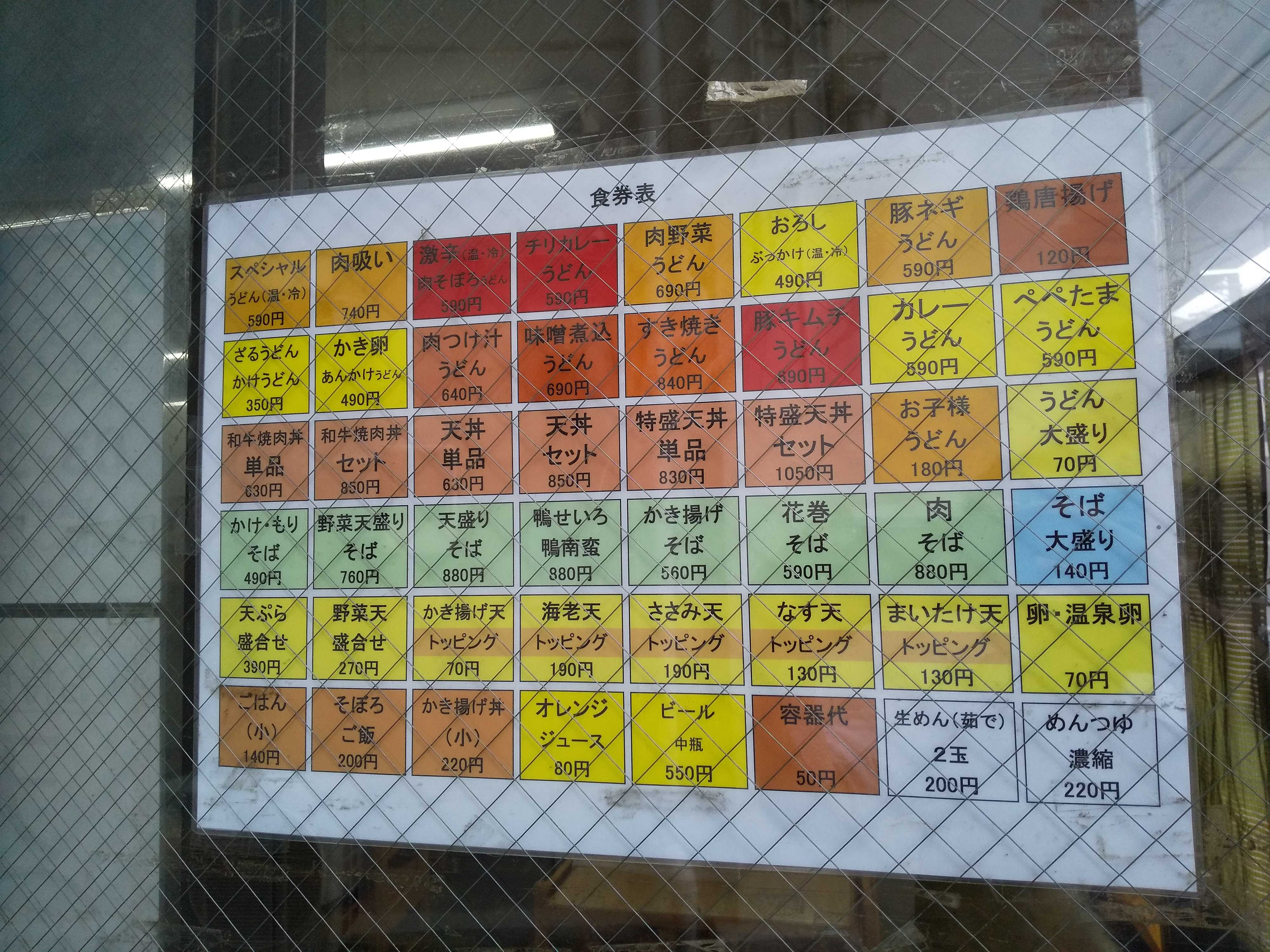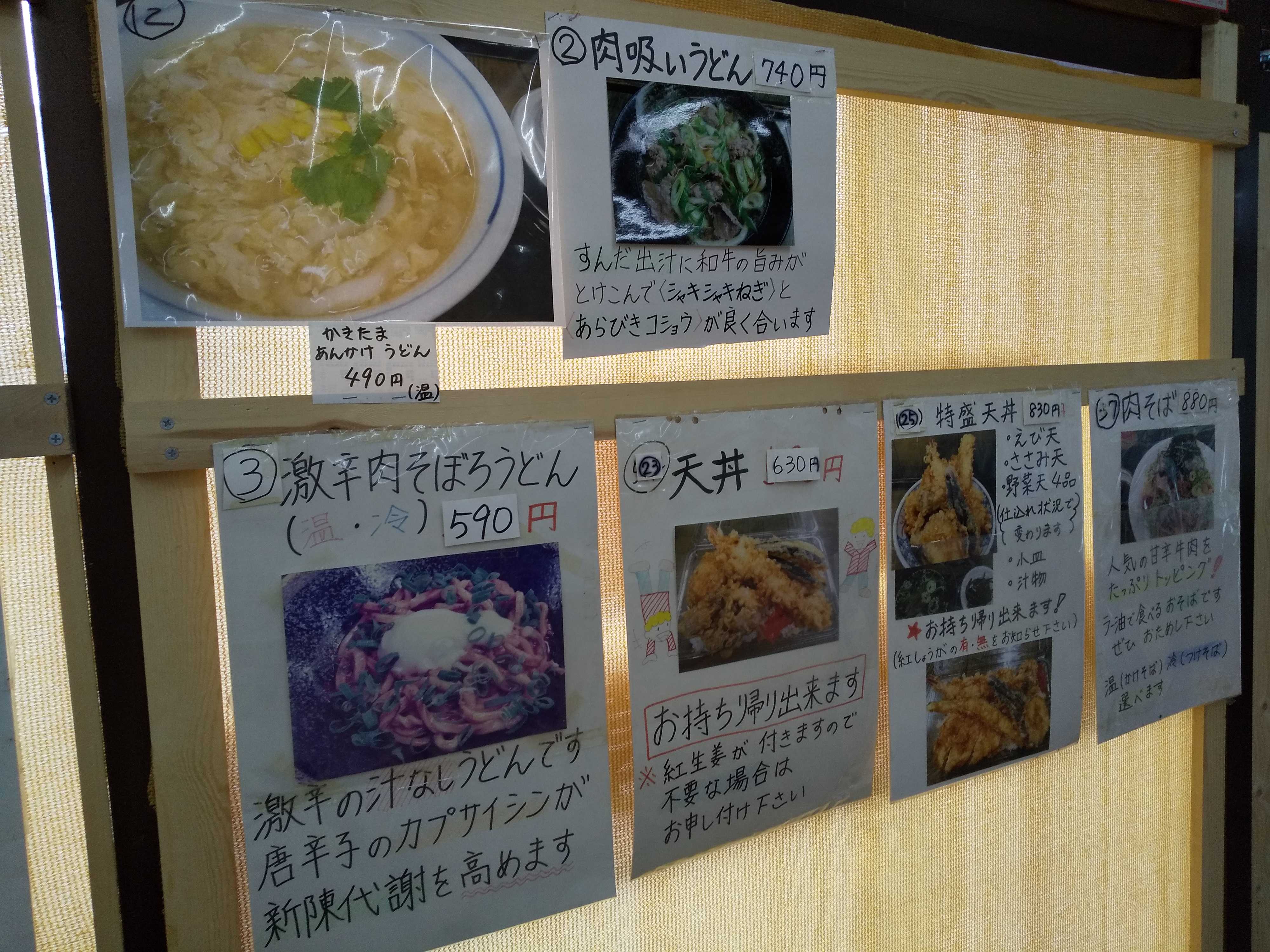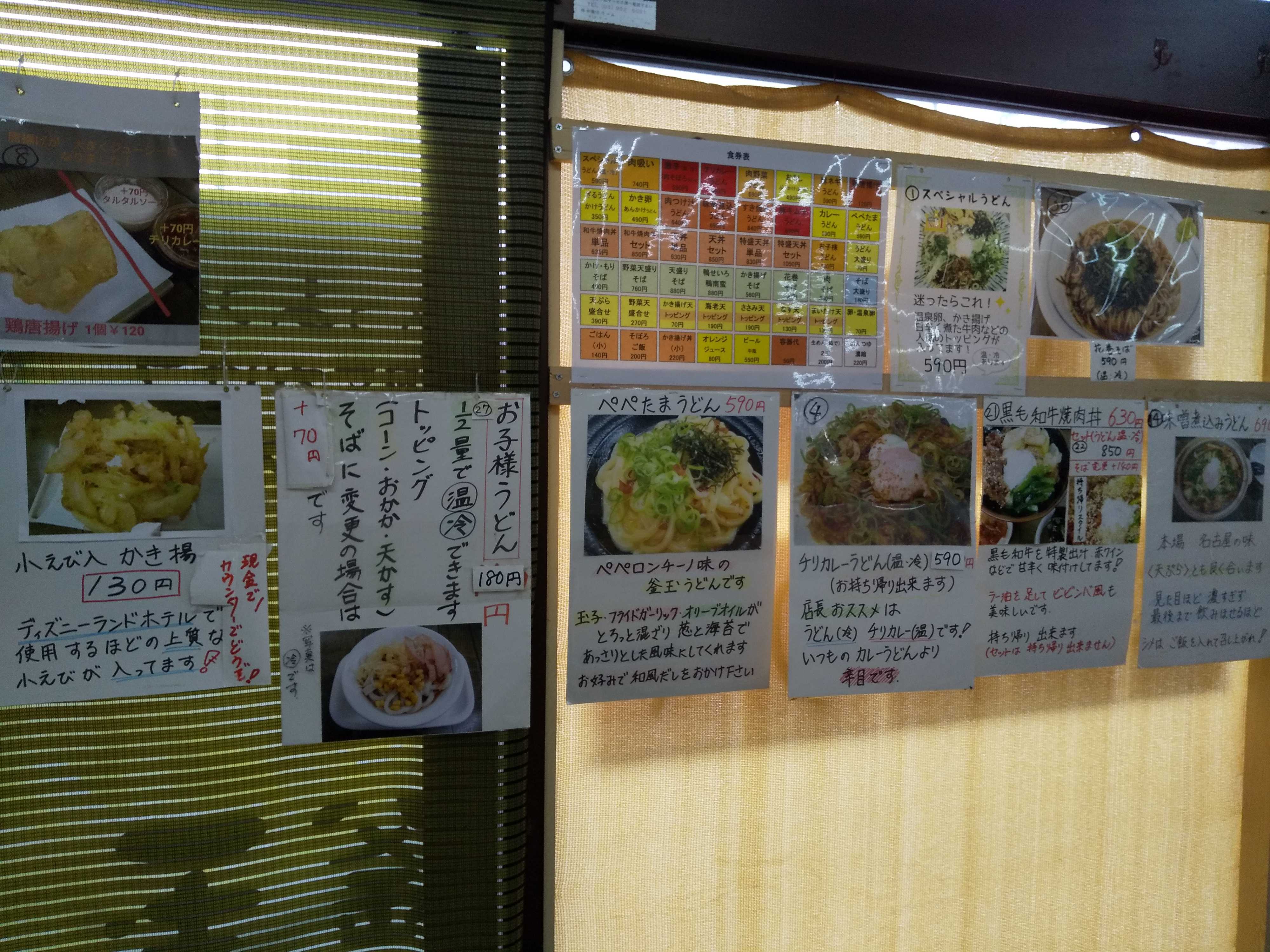 うどんのほうが豊富なメニュー。『スペシャルうどん』『ぺぺ玉うどん』『チリカレーうどん』とか気になるメニューもあるね。そば版はないみたい