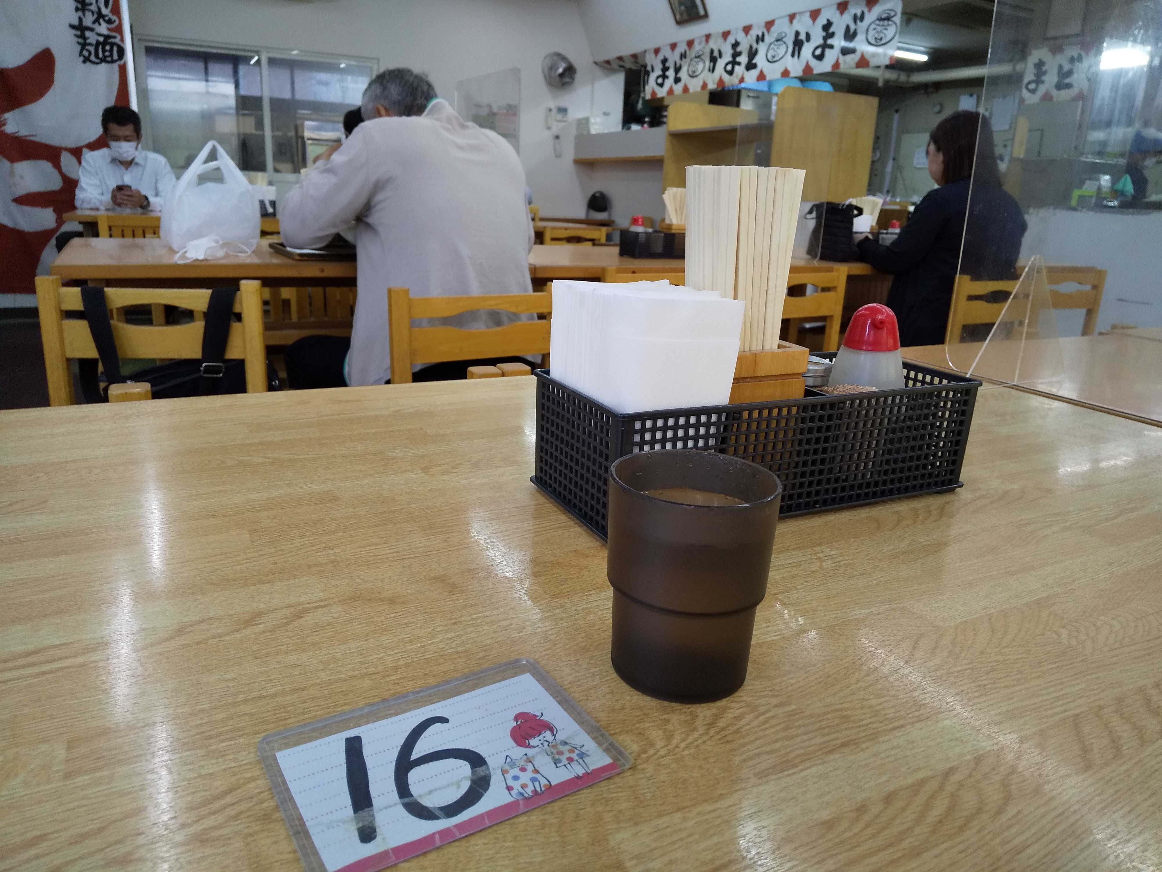 店内。2時前で空いていた 食券を渡すと番号札が渡されて待つ。