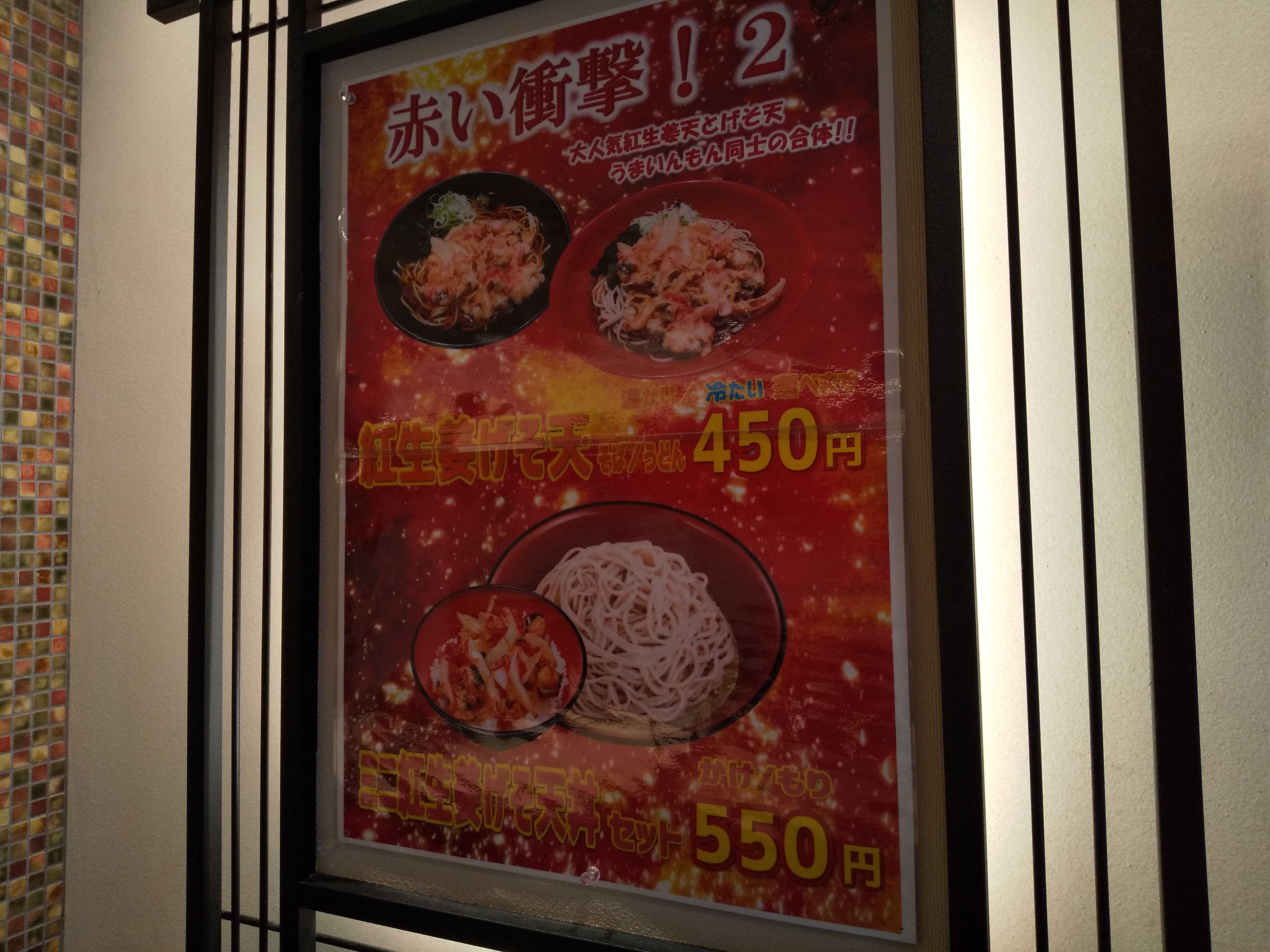 店内に、この前いただいた『紅生姜ゲソ天そば』のPOPがある。これ、再食してもいいな