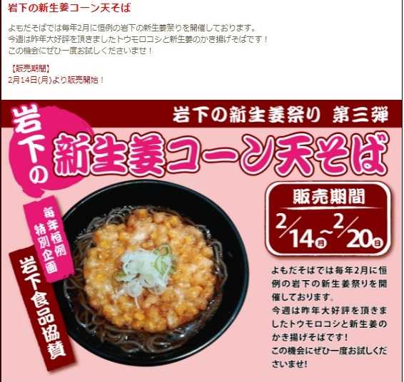 去年まで あまり意識してなかったんだけど、【よもだそば】さんでは毎年2月各週に「週替わりそば」で『岩下の新生姜』を使ったそばを提供する 「岩下の新生姜祭り」 なんだってね