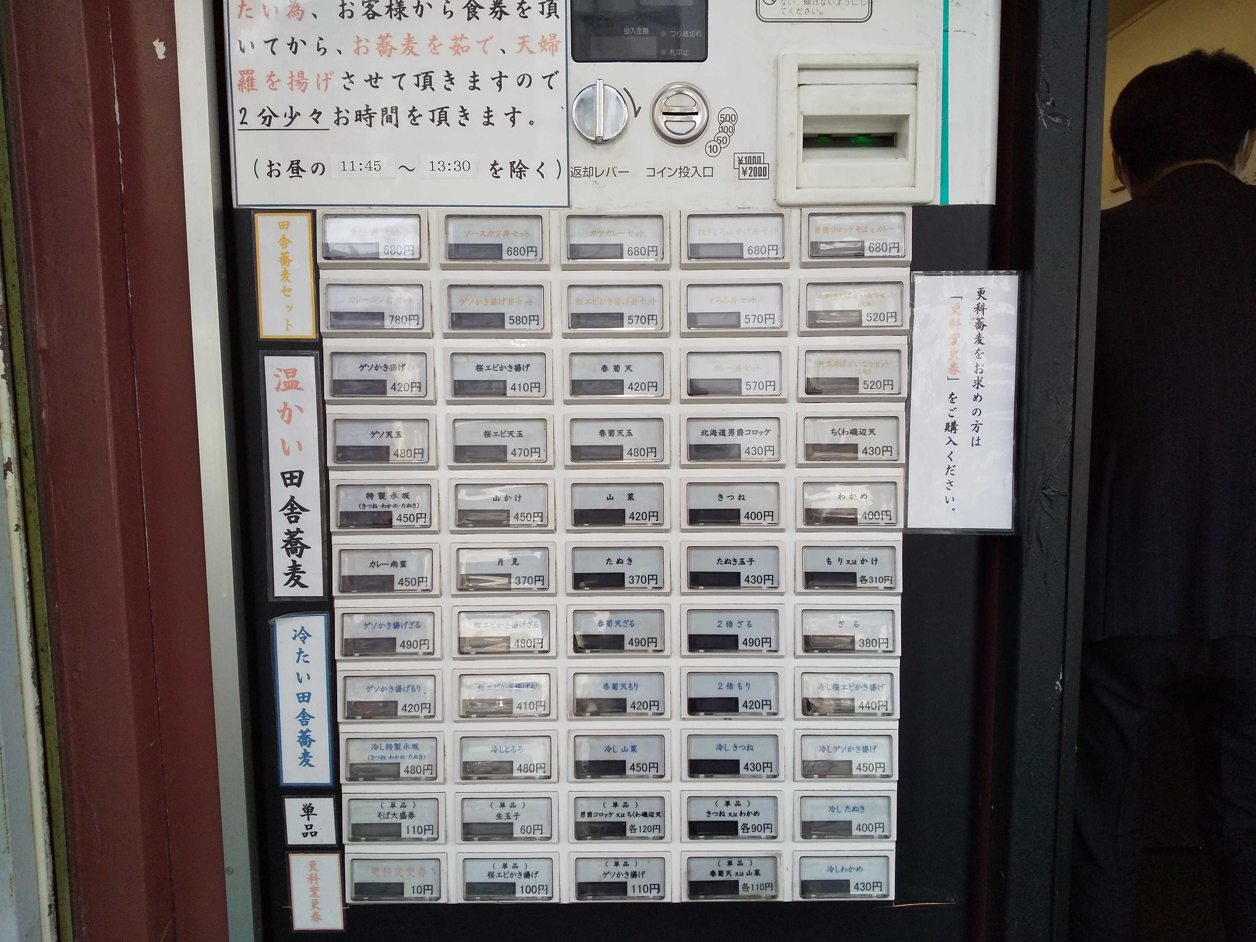 券売機。今日は更科そばで食べるつもり。最下段左端の『更科変更券』\10も一緒に買う。