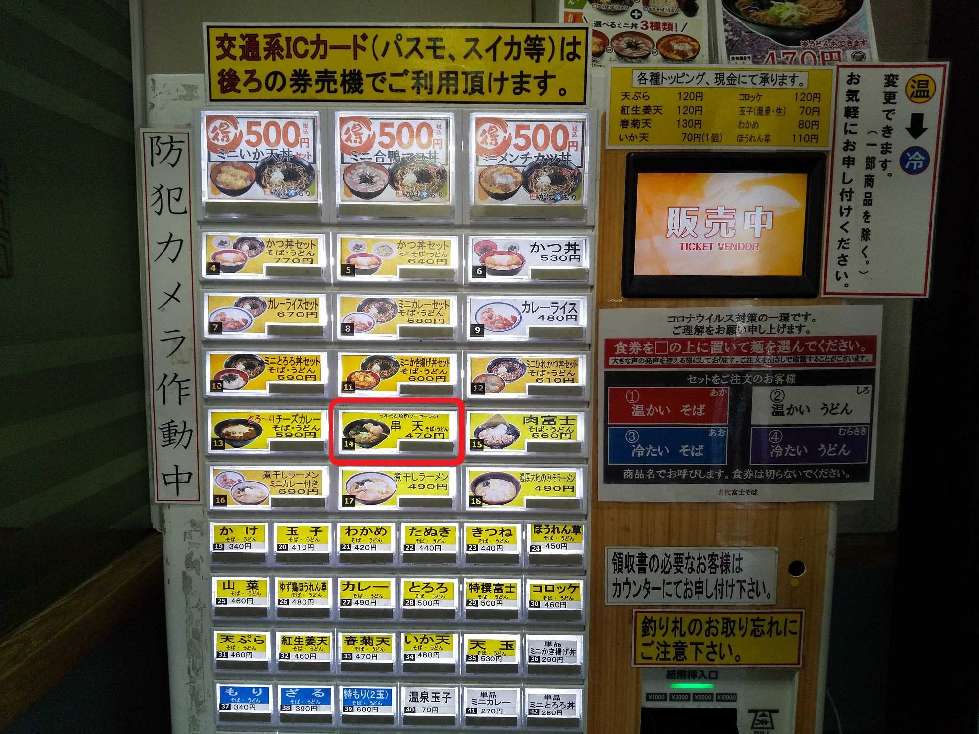 券売機では中央付近。その左隣には先日いただいた『とろ~りチーズカレーそば』のボタンも残っているね。