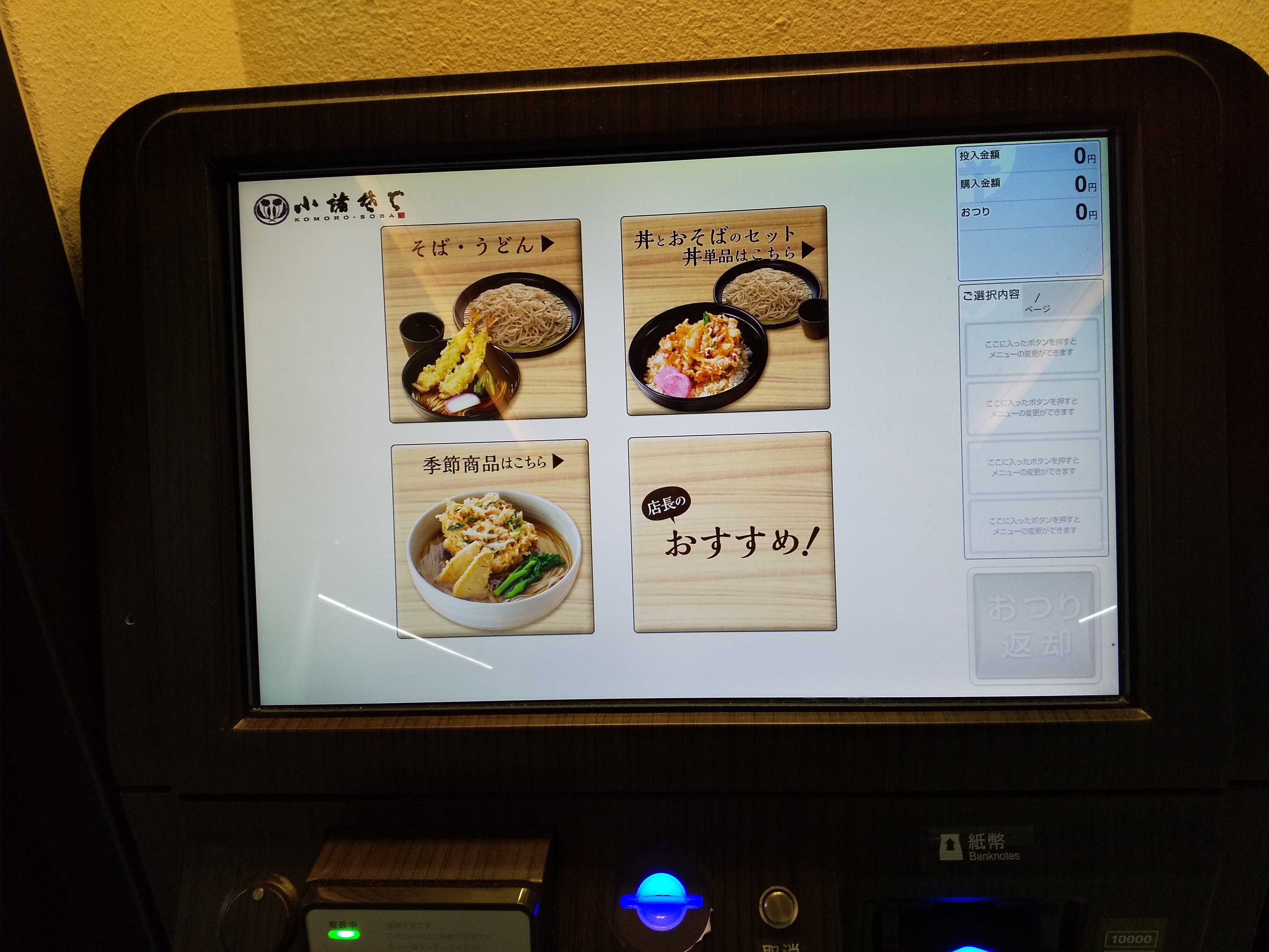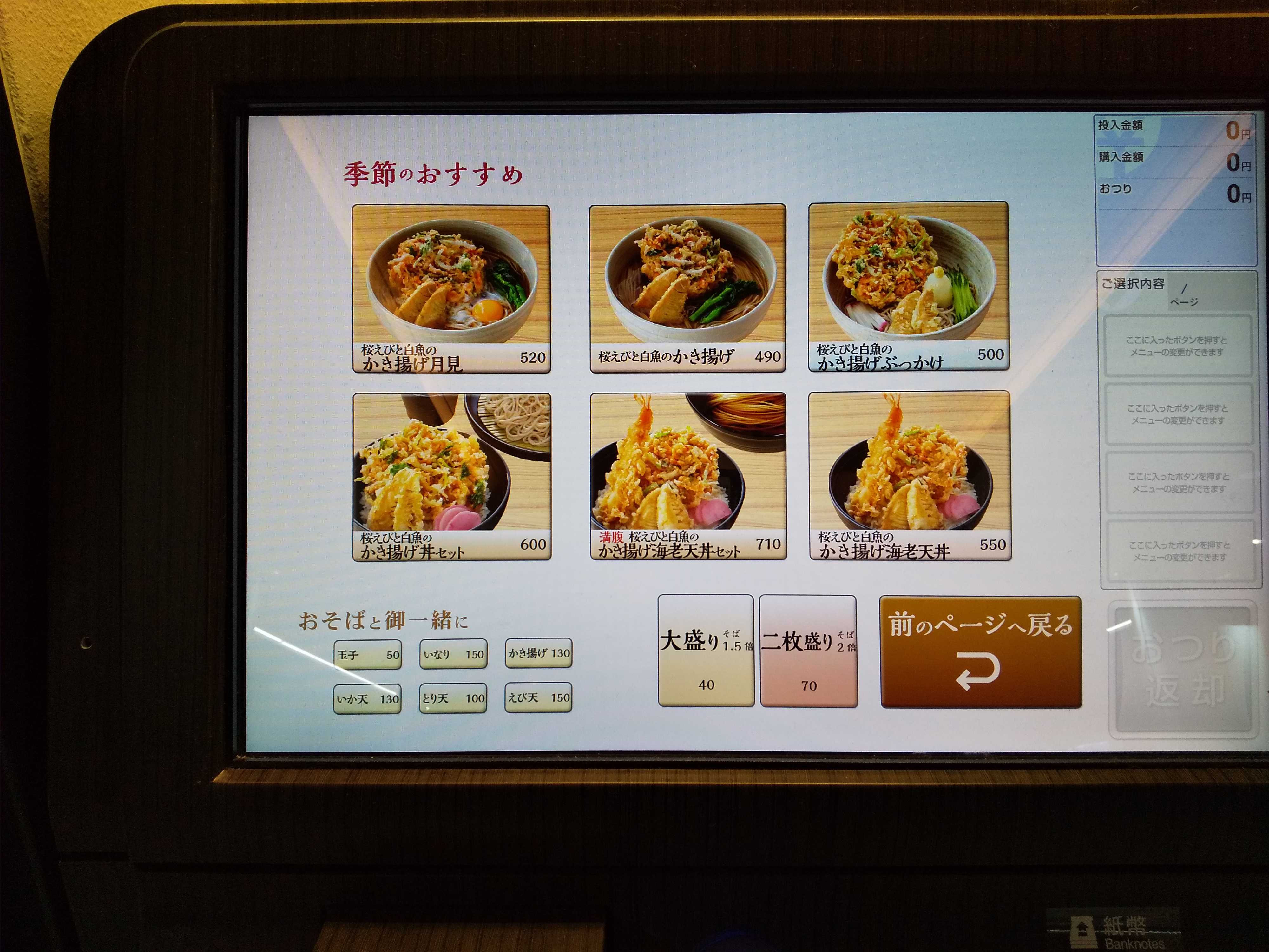 店頭にPASMO/Suica対応の券売機。完全立ち食い。セルフ。