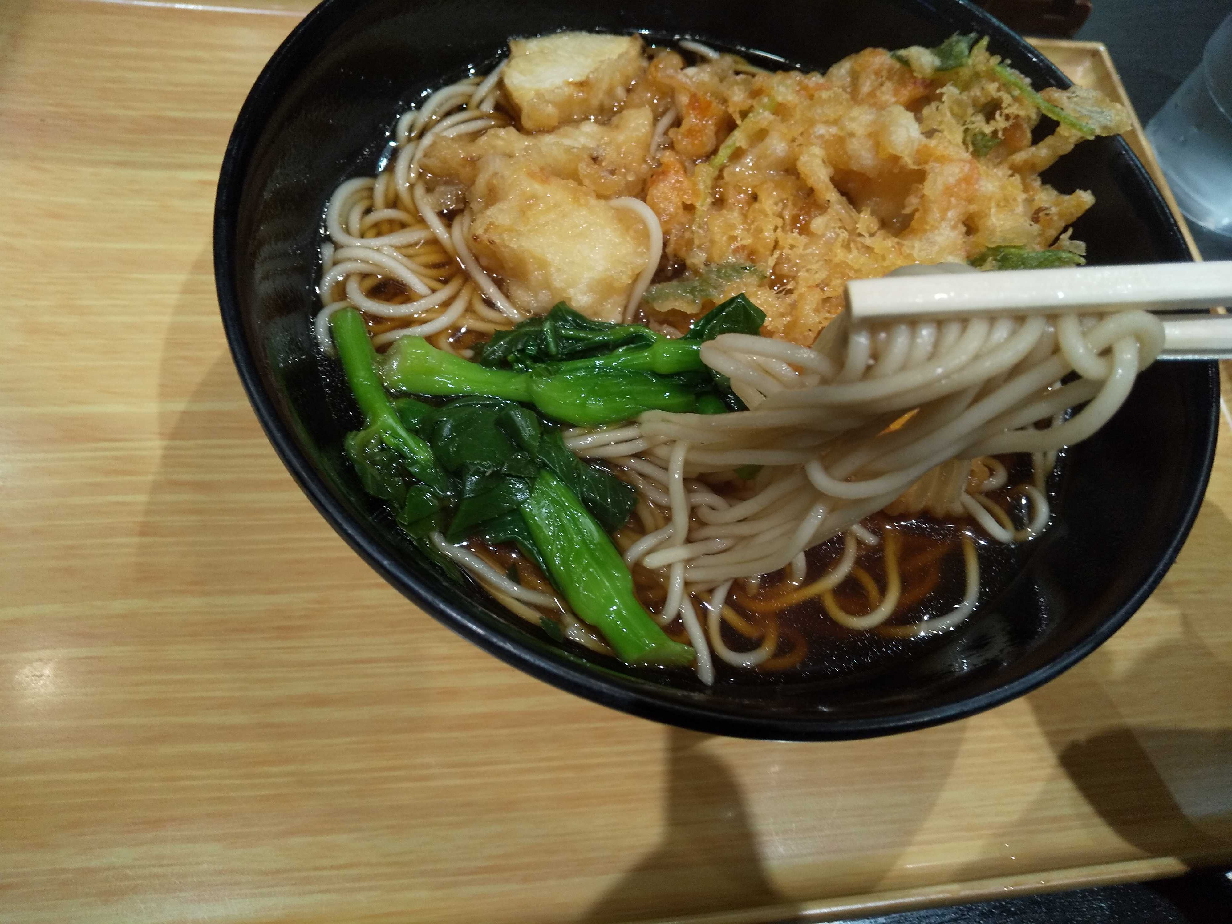 で気温は12℃くらい。少し冷えているから温そばにしよう。月見じゃなくていいや。
