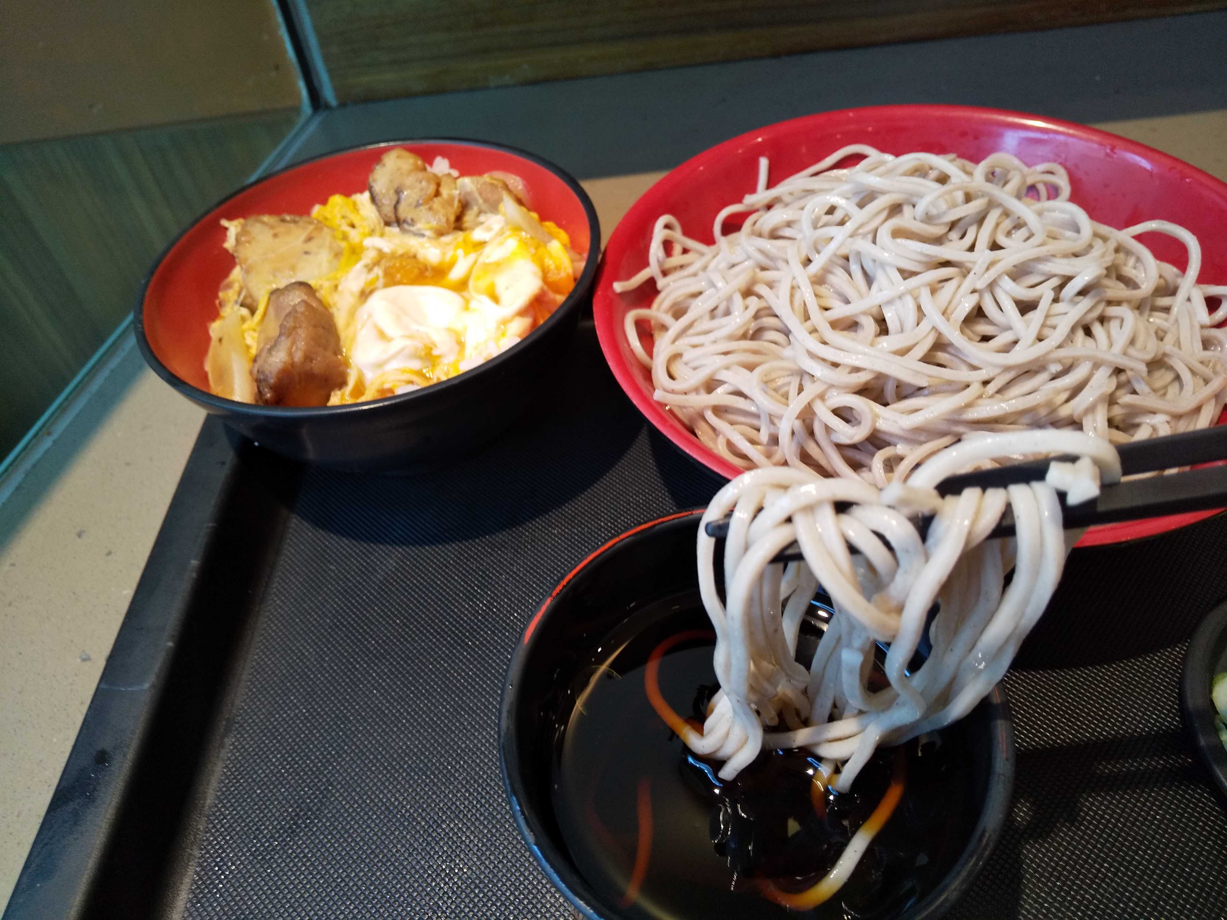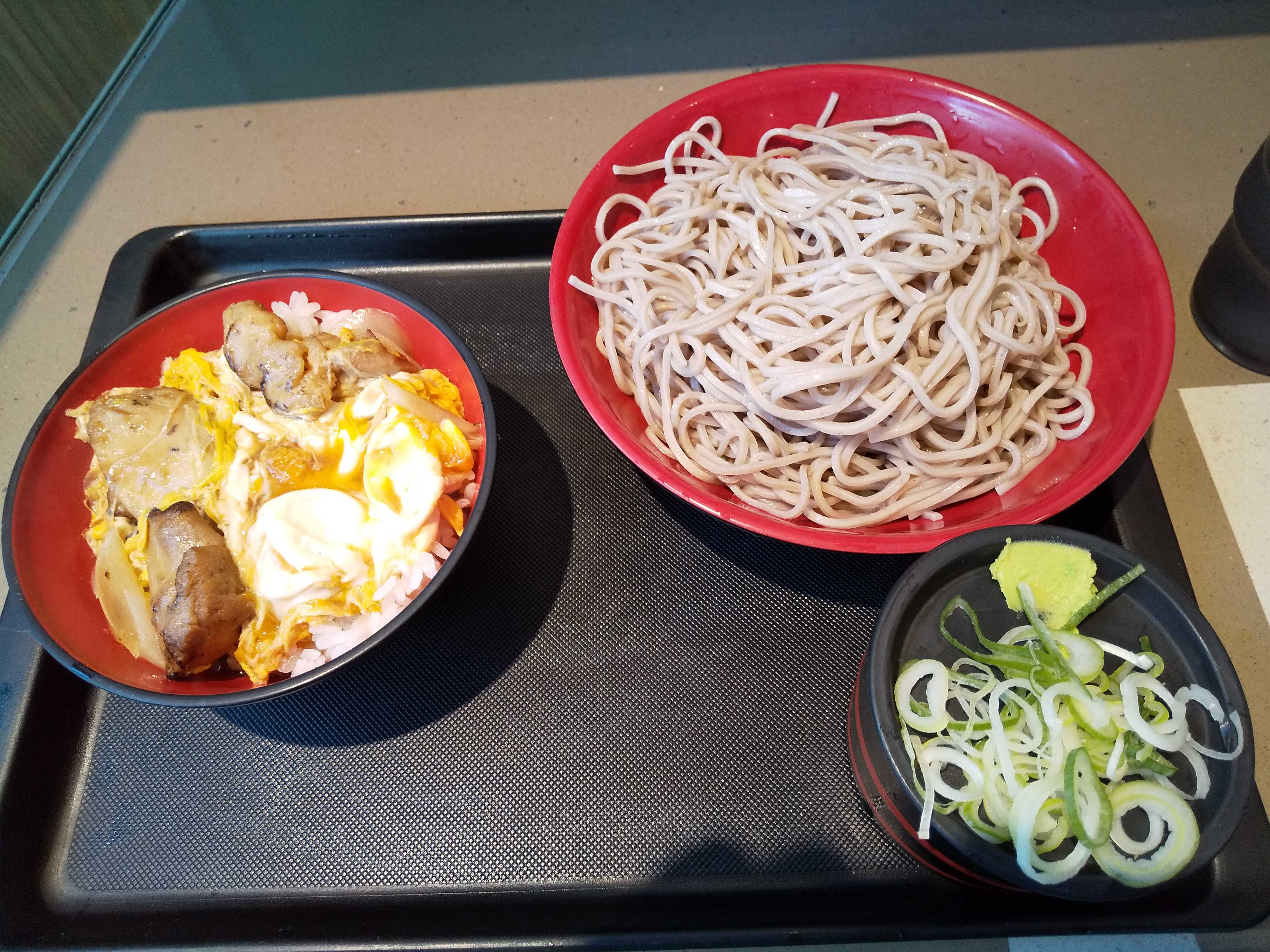 その『ミニ炭火親子丼セット』\500。冷たいそばで。
