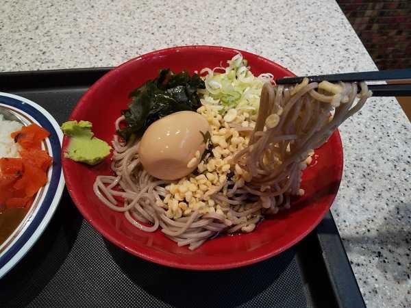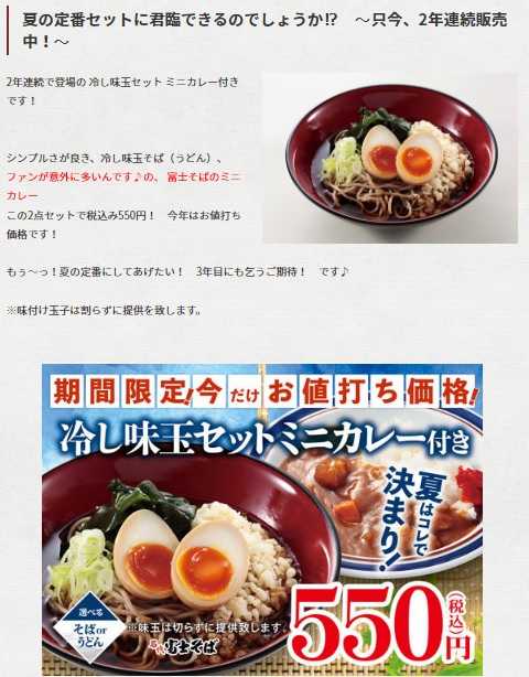 その『冷し味玉セット ミニカレー付き』\550。もちろん、そばで。