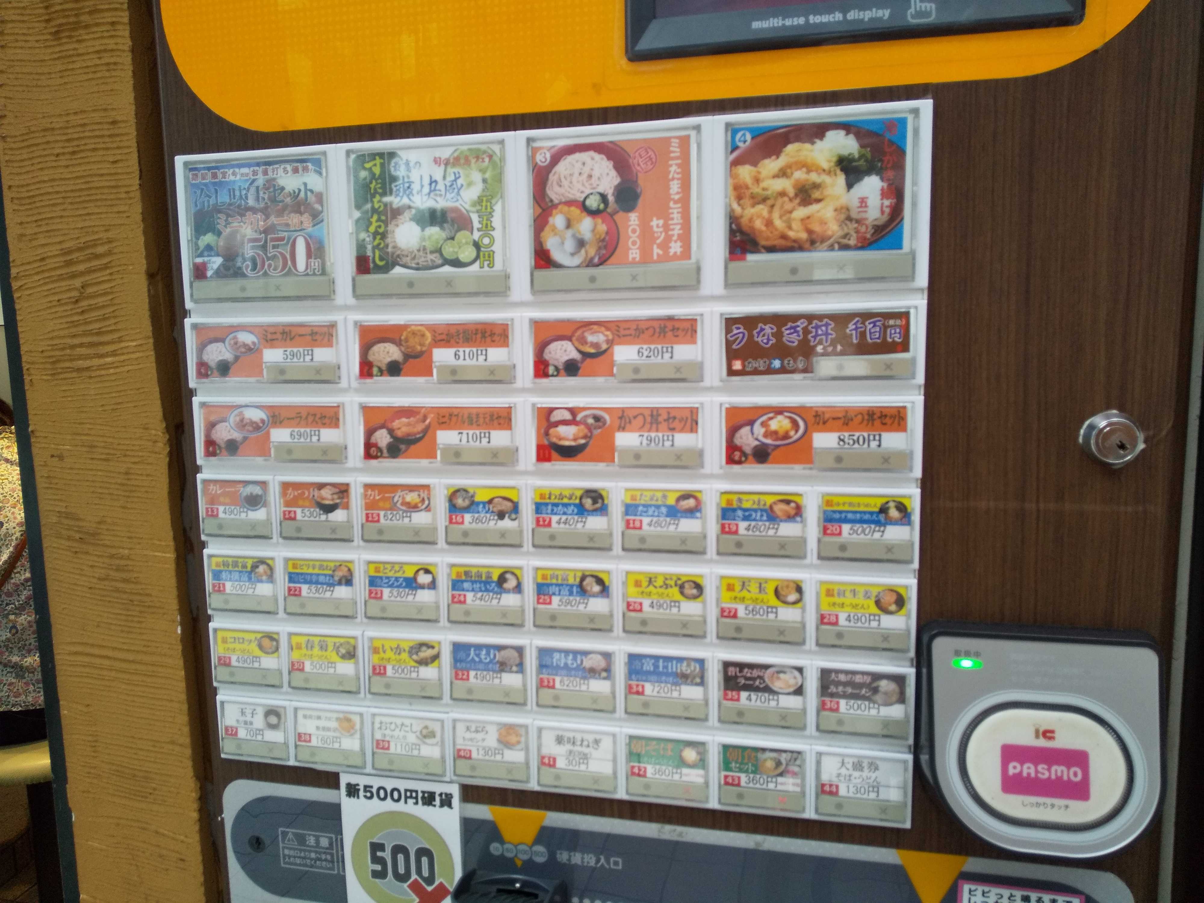 券売機の最上段左端。右端2段目に『うなぎ丼』継続を確認したが、もはや 関心は低い。