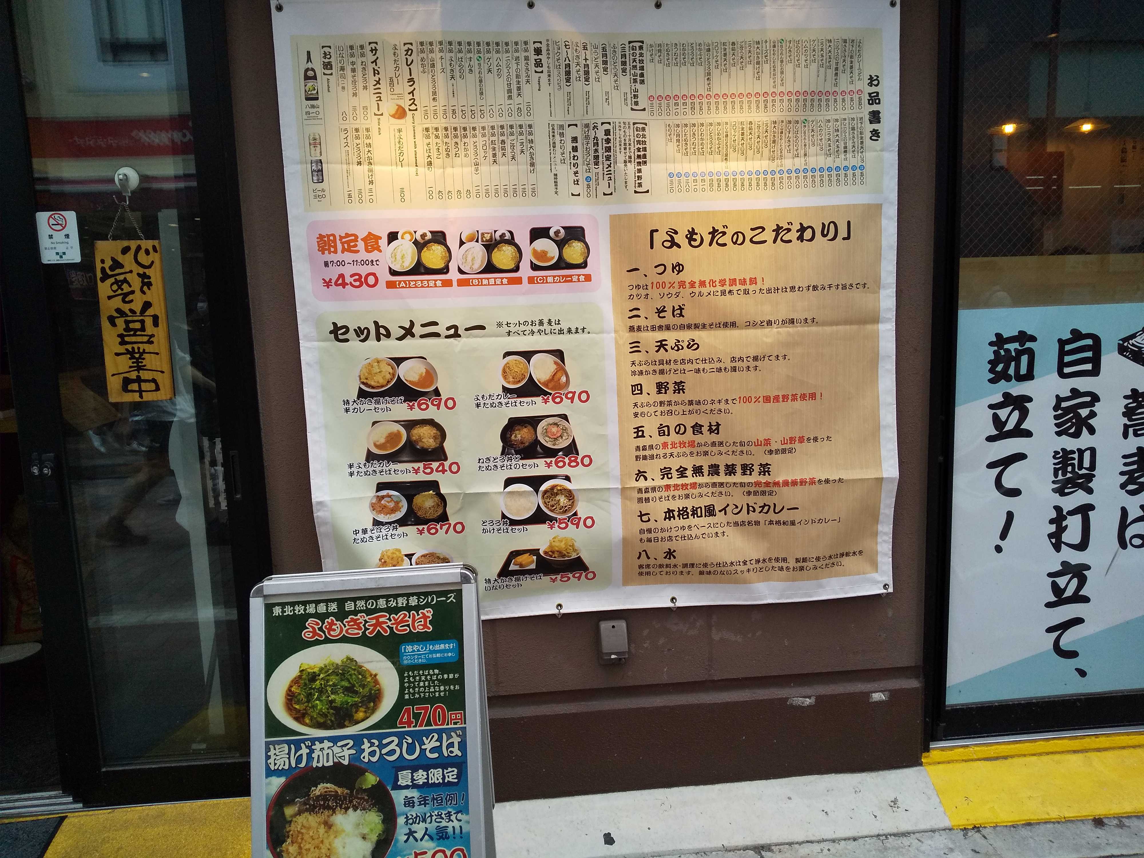 店頭  下のほうに『揚げ茄子おろしそば』が見えて魅力的だが今日はパス