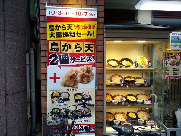 鳥から天2個サービスは丼ものとのセット商品だけでなく、レギュラーメニューの『鳥からそば』でも適用される。つまり、4個も載るんだ