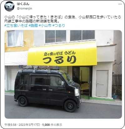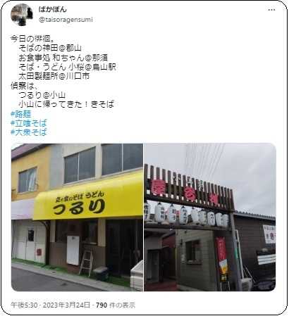 【立ち食いそば うどん つるり】 栃木県小山市城山町3-6-30  ホームページ