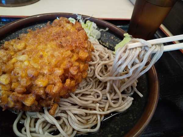いただいたのは『めっちゃコーン天そば』\520。そばは温冷選べて冷たいそばで。