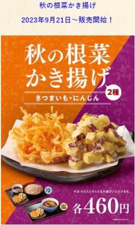 季節商品は『秋の根菜かき揚げ』だけど、野菜だけのかき揚げは個人的にはあまり興味がない