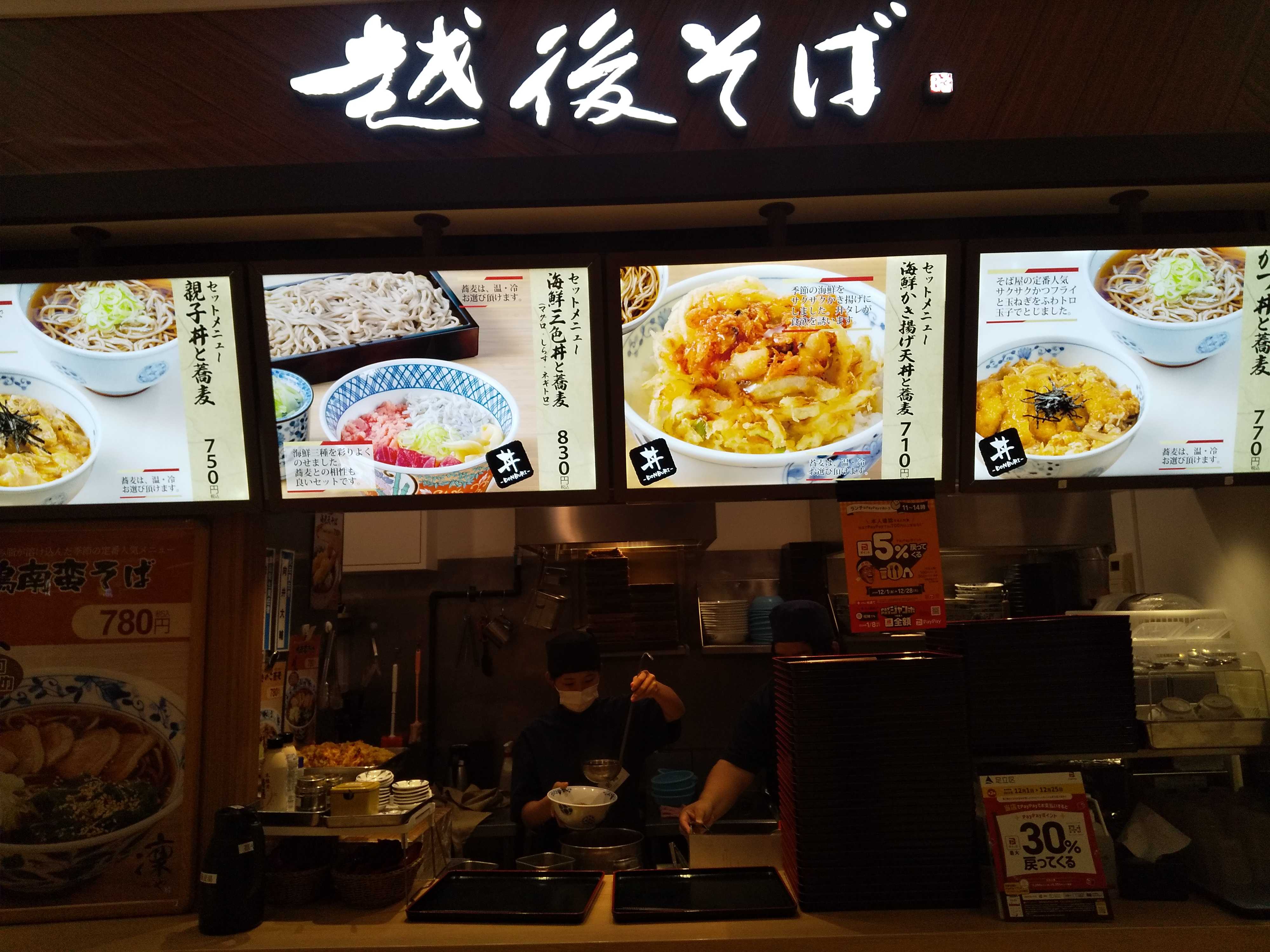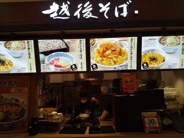 綾瀬などにあって【味の里】ブランドに衣替えした【下町の王様 越後そば】とは別系統で、【ブラッスリー カフェ・ド・クレア】などを展開する 株式会社クレア のチェーン店の立ち食いそば屋系【越後そば】。