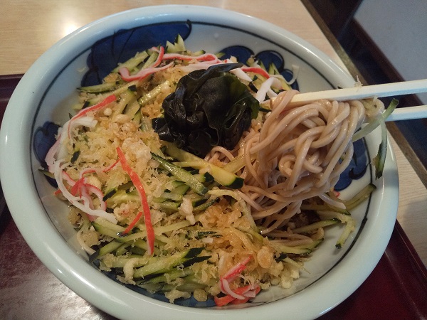 美味しいね  特に、そばと細切りのきゅうりを一緒に食べると食感が良くて美味しいのね