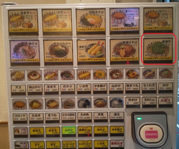 券売機のボタンに表のメニューに載っていない『春菊天そば』があることに気づいた