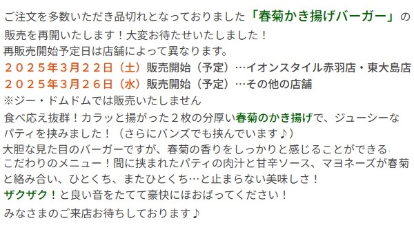 【ドムドムハンバーガー イオンスタイル赤羽店】 北区神谷3-12-1 イオンスタイル赤羽1F