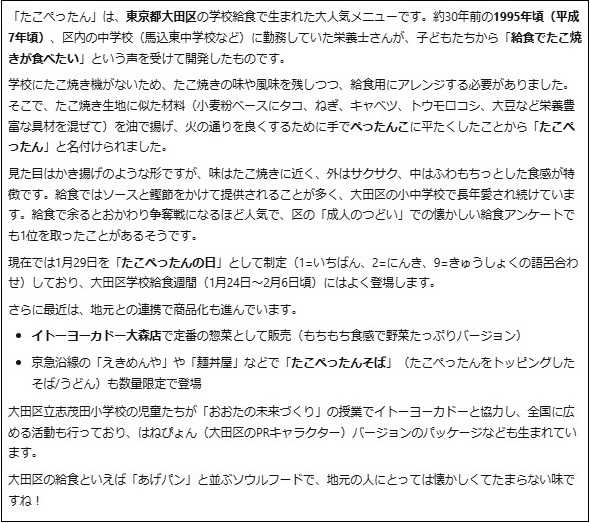 足立区民の私は『たこぺったん』は初耳。 生成AI(Grok先生)に聞いてみた