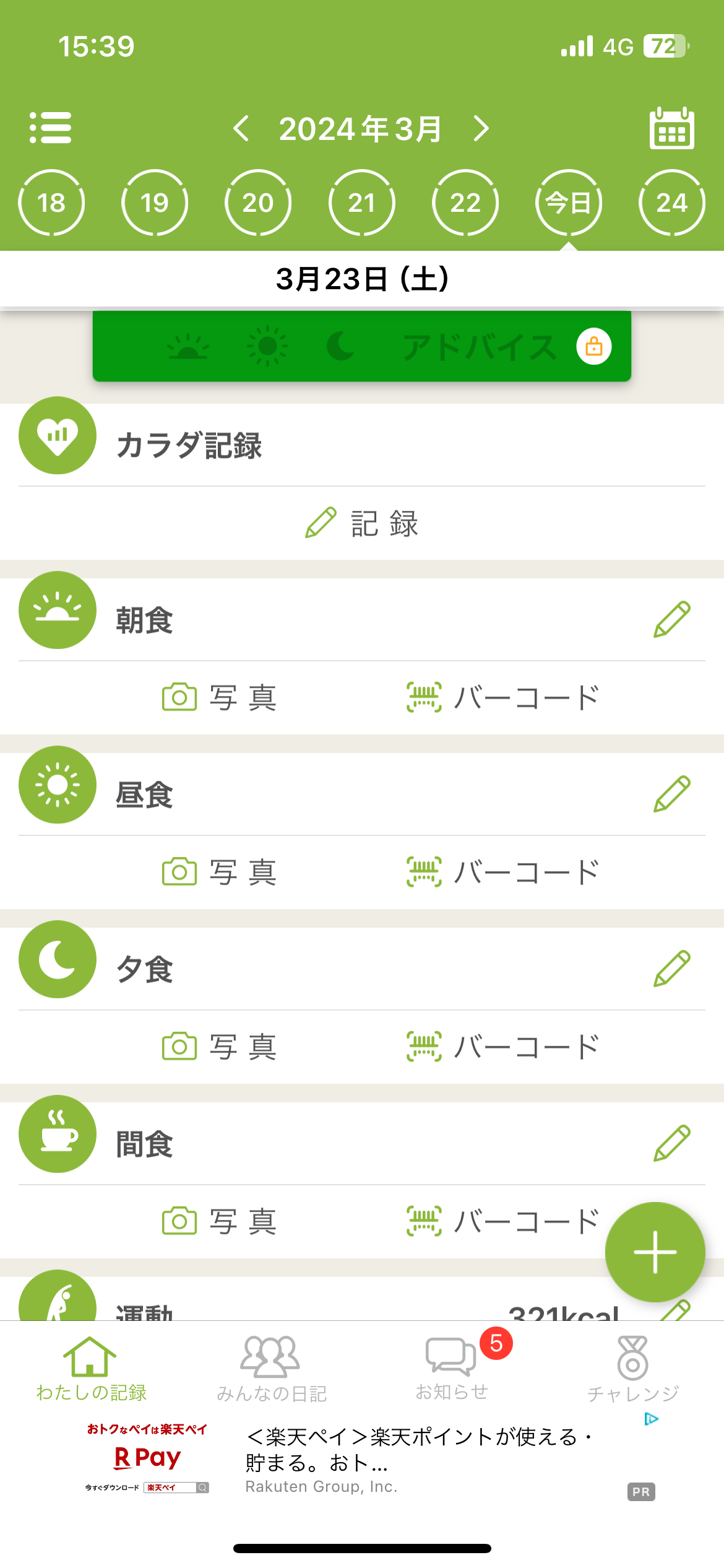 私は、仕事で外食だったり、お弁当を食べる事が多く、アプリ内には中々入力できなかったり、AIでお弁当を登録しても、間違える事が多く、1週間過ぎるとめんどくさくなってしまって、結果、入力しない日が続いてしまい、、、